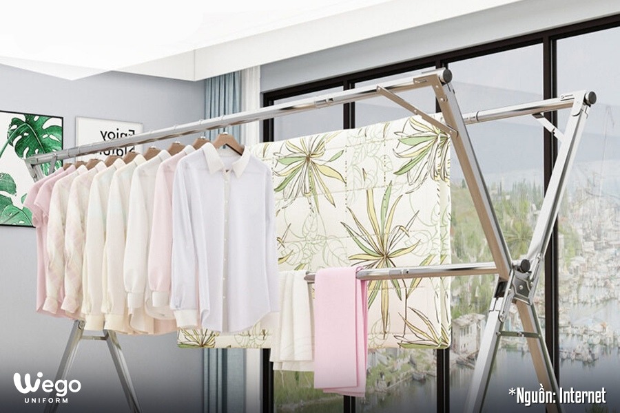 Phơi áo ngang trên móc hoặc bề mặt phẳng