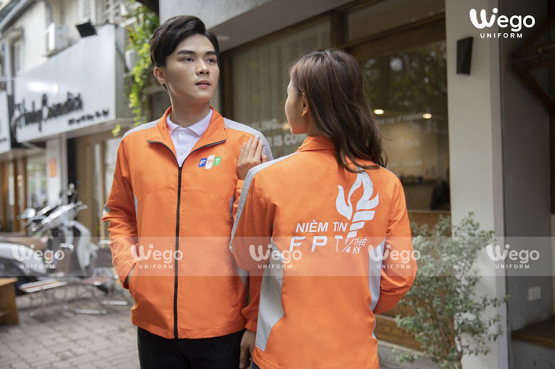 Màu cam là gam màu chủ đạo của mẫu áo gió đồng phục FPT là màu ấm áp của mặt trời đầy sinh lực, nhiệt huyết của tuổi trẻ. Màu cam cũng là màu thể hiện sự thân thiện, cởi mở, sẵn sàng chia sẻ với cộng đồng. Đồng phục FPT tạo nên tinh thần đoàn kết cho toàn thể cán bộ, nhân viên làm việc ở FPT từ Bắc vào Nam. Nhân viên mặc đồng phục cũng tạo nên được sự trang trọng, chuyên nghiệp, tạo ấn tượng và lòng tin hơn cho khách hàng.