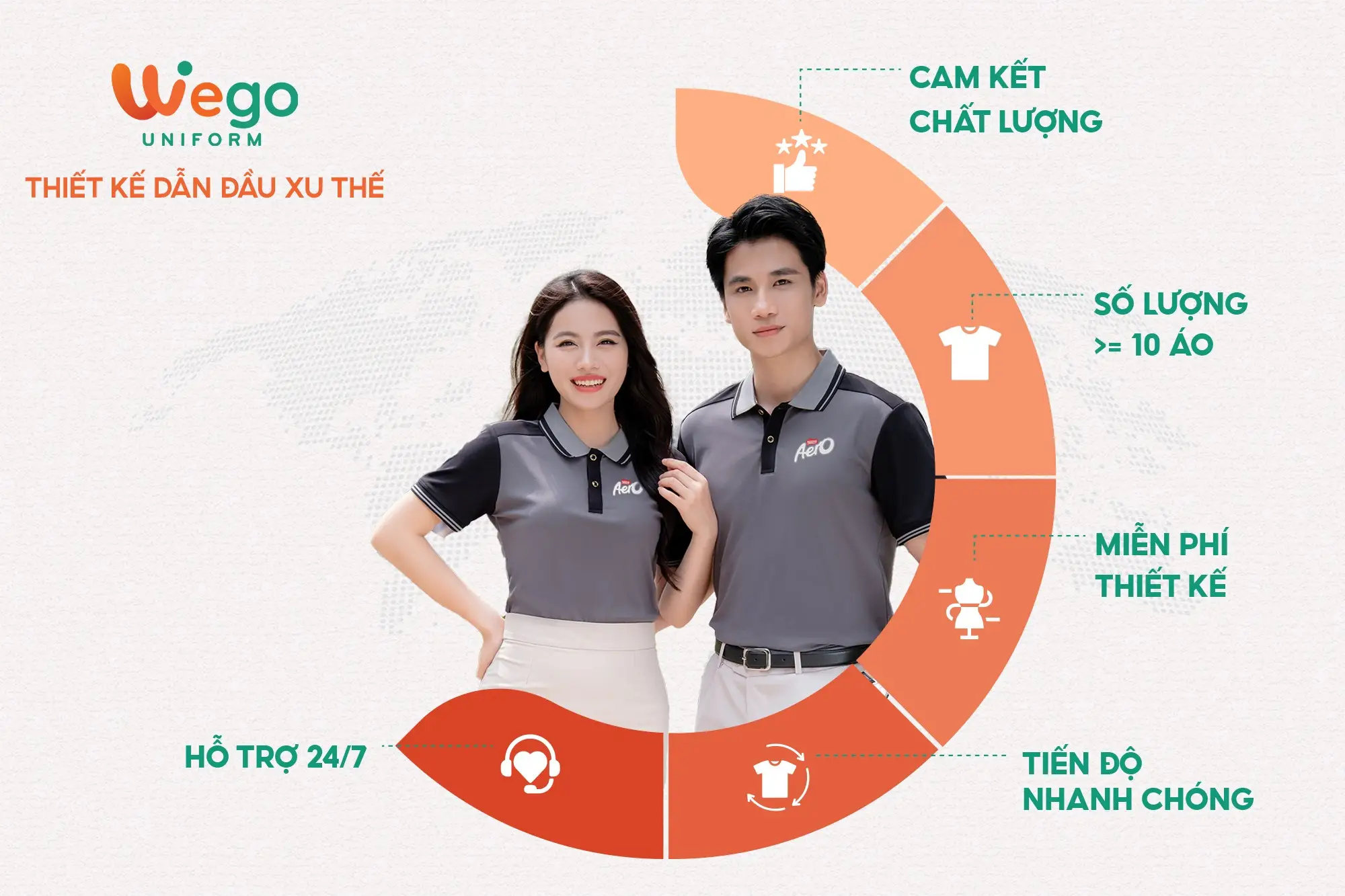 Với nhiều năm kinh nghiệm trong ngành sản xuất đồng phục, Wego tự hào là đơn vị dẫn đầu trong lĩnh vực đồng phục, trở thành đối tác đáng tin cậy của nhiều doanh nghiệp, tổ chức và cá nhân trên cả nước.