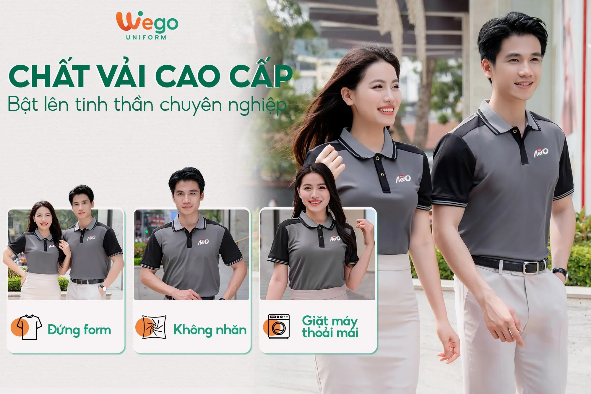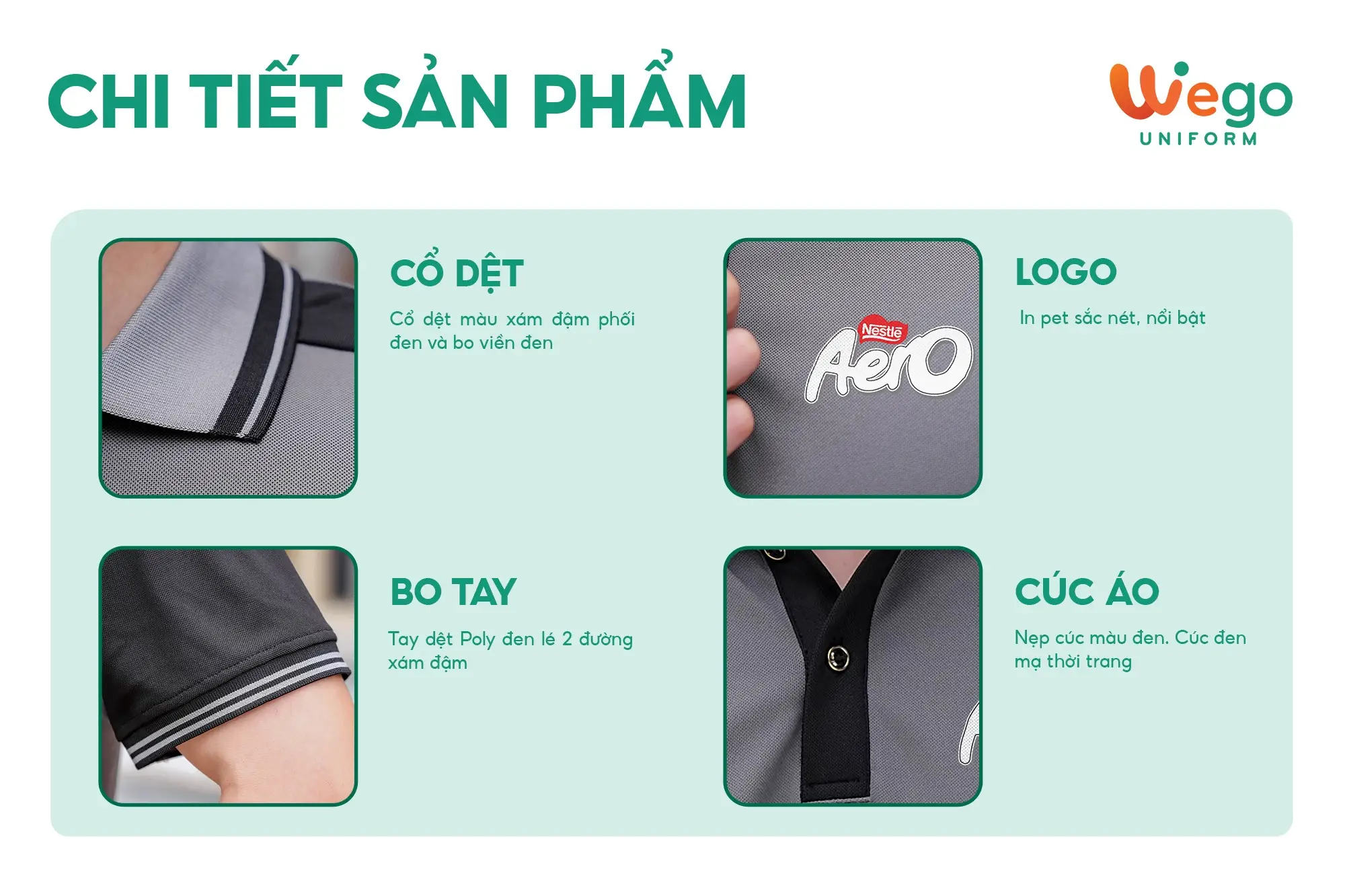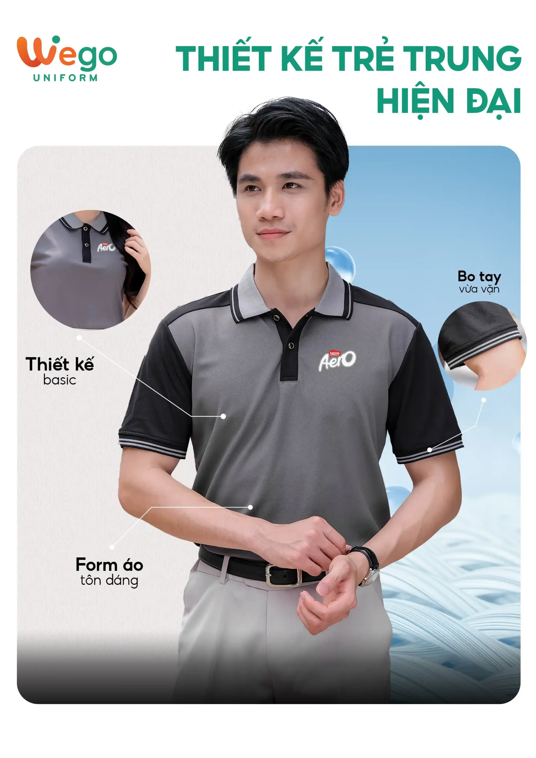 - Được thiết kế độc quyền bởi Wego Uniform, vừa nâng cao tính thời trang, vừa giúp nâng cao nhận diện thương hiệu