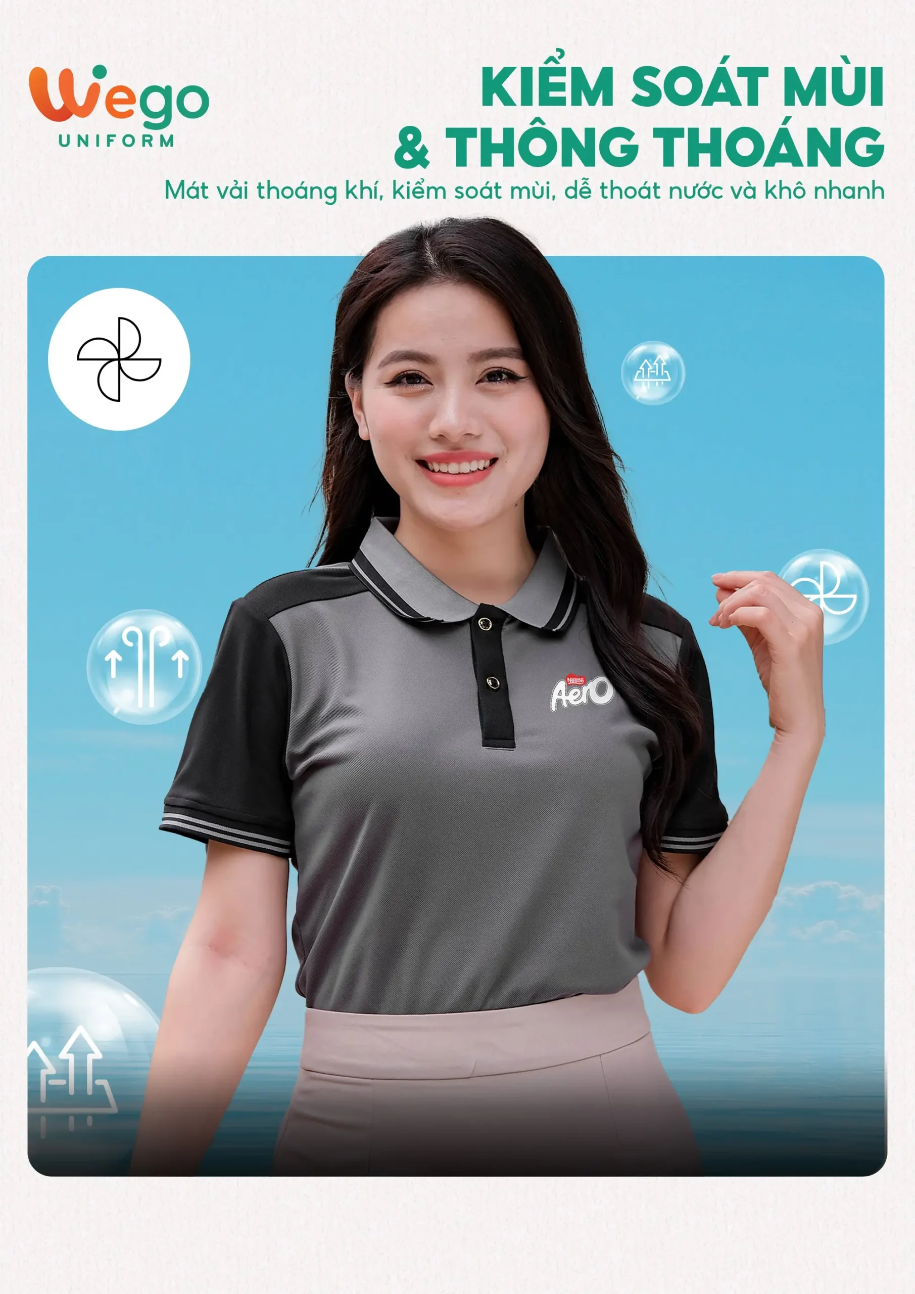 - Được thiết kế độc quyền bởi Wego Uniform, vừa nâng cao tính thời trang, vừa giúp nâng cao nhận diện thương hiệu