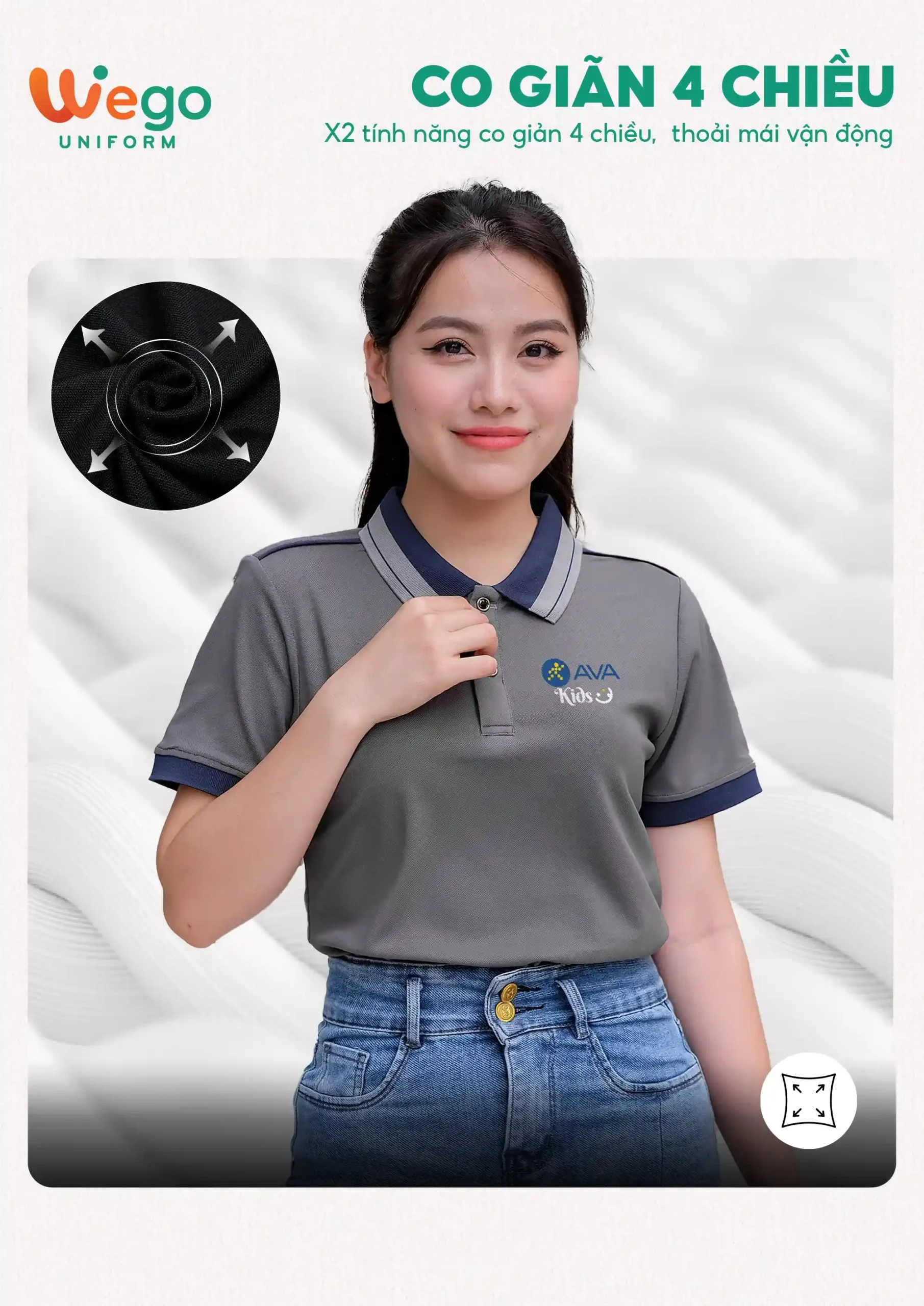 Chính vì vậy, áo đồng phục Wego luôn có độ bền cao, khả năng co giãn và thoáng khí tốt. Từ đó mang lại sự thoải mái tối đa cho người mặc, ngay cả trong thời tiết nắng nóng hay những môi trường làm việc đòi hỏi vận động nhiều hoặc trong thời gian dài.