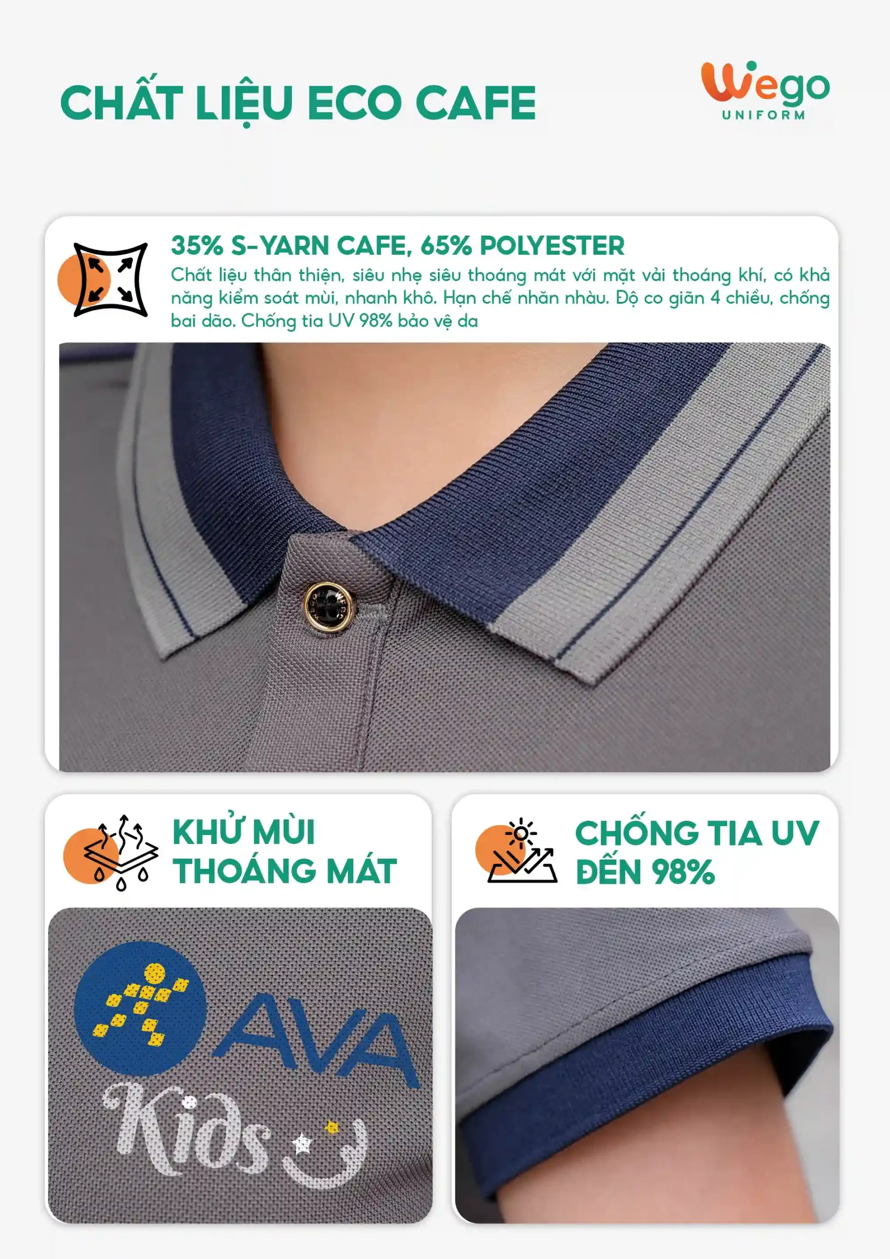 - Được thiết kế độc quyền bởi Wego Uniform, vừa nâng cao tính thời trang, vừa giúp nâng cao nhận diện thương hiệu