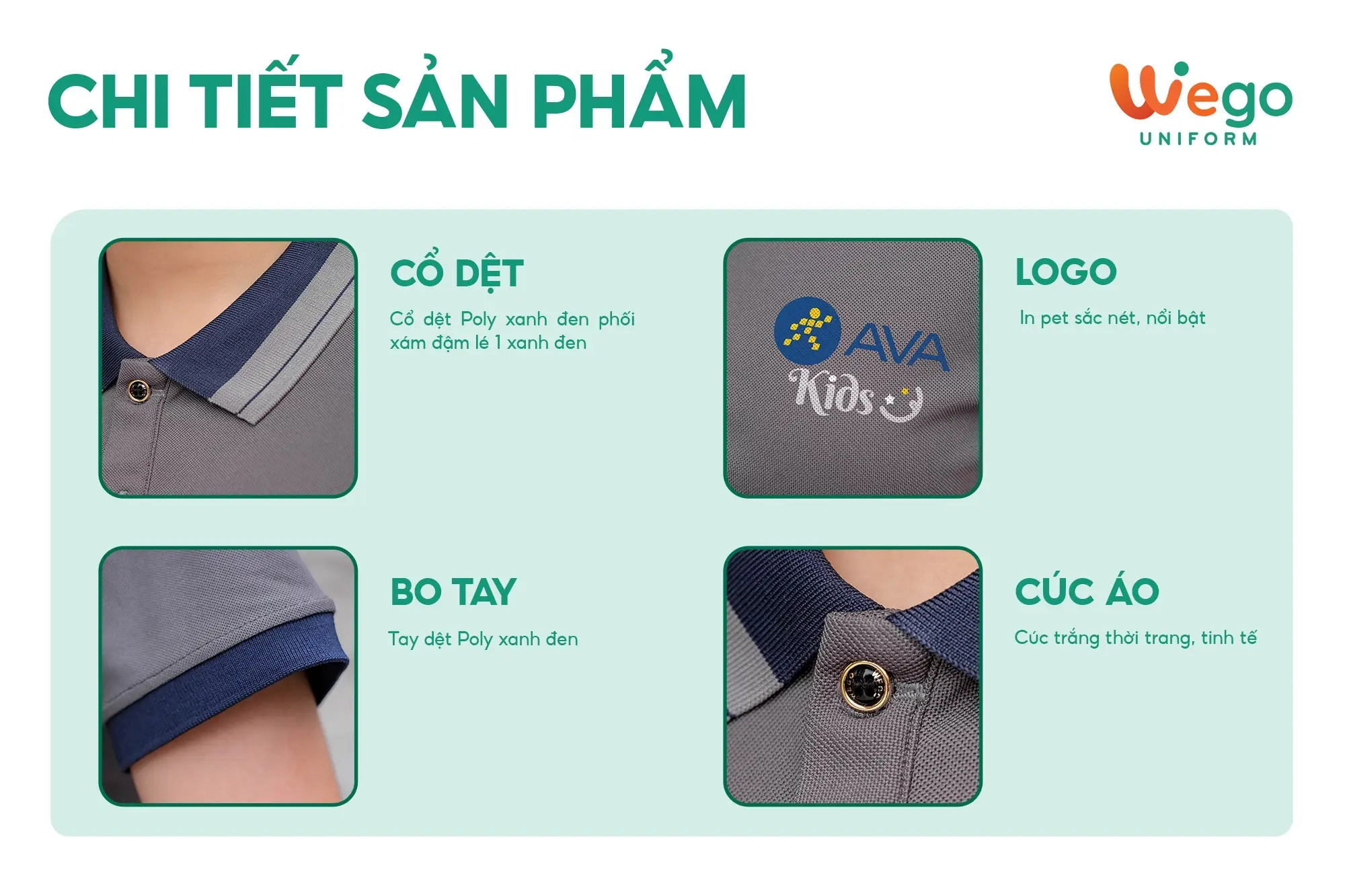 - Được thiết kế độc quyền bởi Wego Uniform, vừa nâng cao tính thời trang, vừa giúp nâng cao nhận diện thương hiệu