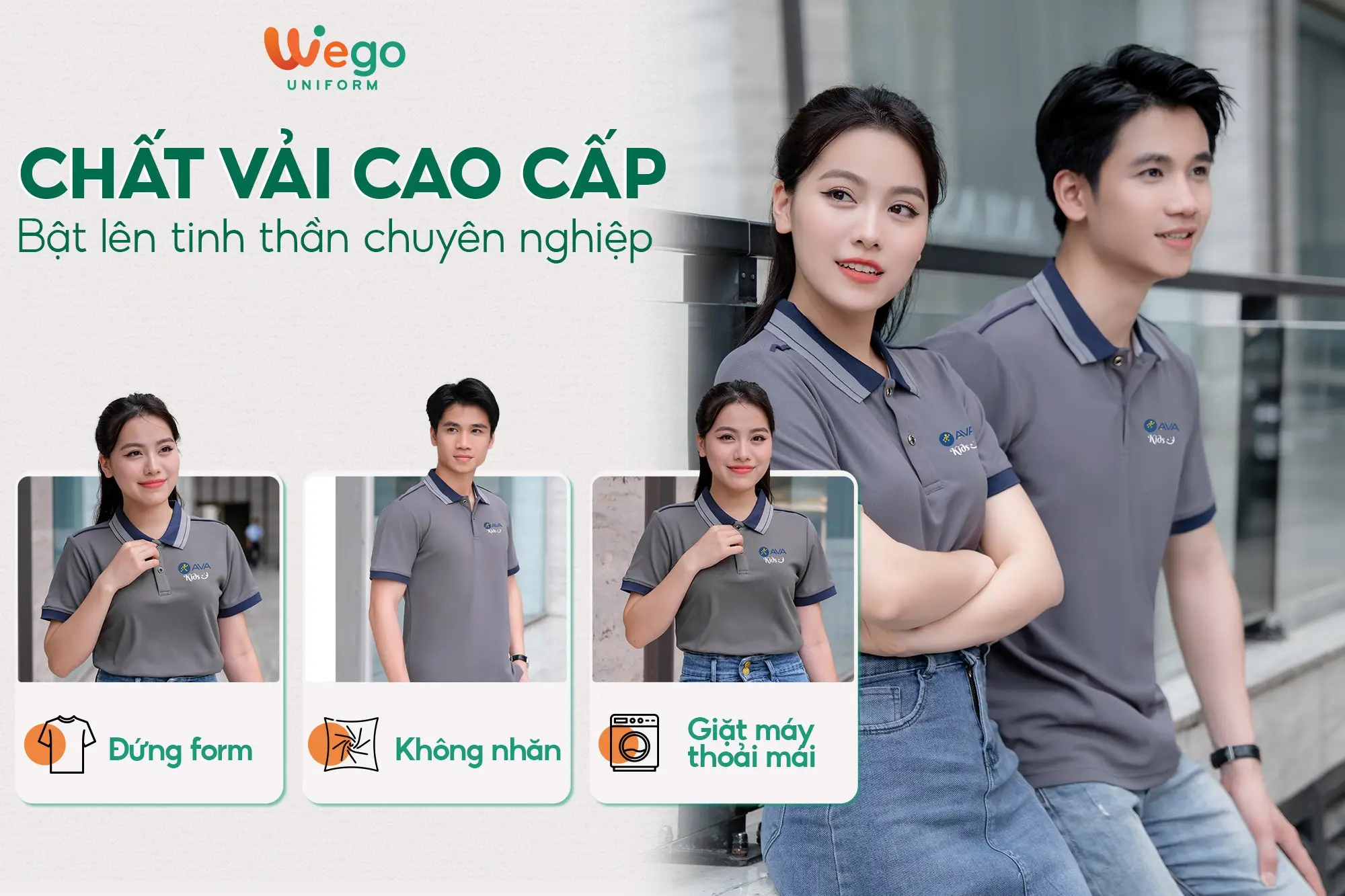 Chính vì vậy, áo đồng phục Wego luôn có độ bền cao, khả năng co giãn và thoáng khí tốt. Từ đó mang lại sự thoải mái tối đa cho người mặc, ngay cả trong thời tiết nắng nóng hay những môi trường làm việc đòi hỏi vận động nhiều hoặc trong thời gian dài.