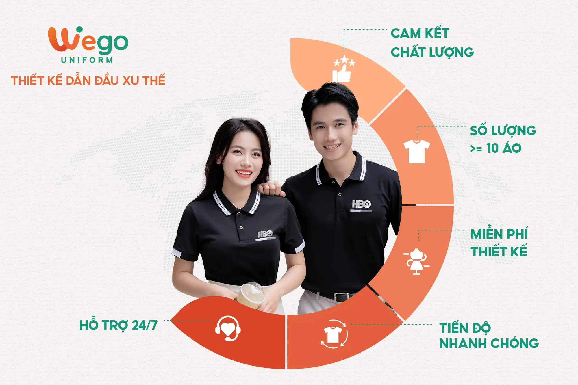 Với nhiều năm kinh nghiệm trong ngành sản xuất đồng phục, Wego tự hào là đơn vị dẫn đầu trong lĩnh vực đồng phục, trở thành đối tác đáng tin cậy của nhiều doanh nghiệp, tổ chức và cá nhân trên cả nước.