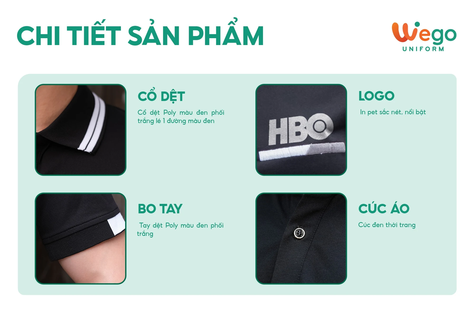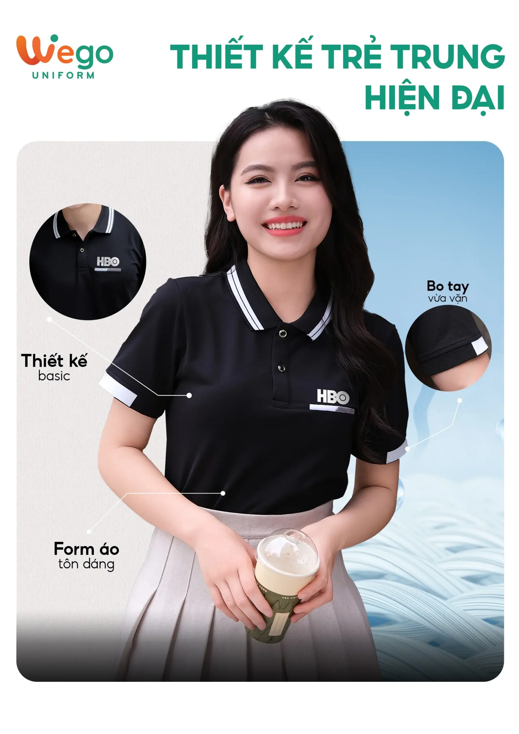 - Được thiết kế độc quyền bởi Wego Uniform, vừa nâng cao tính thời trang, vừa giúp nâng cao nhận diện thương hiệu