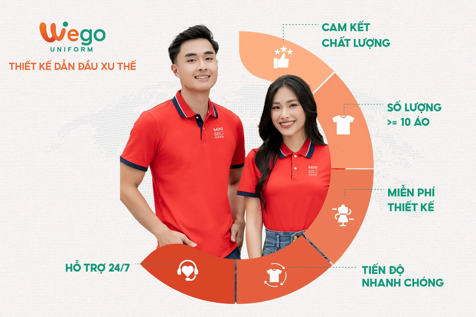Với nhiều năm kinh nghiệm trong ngành sản xuất đồng phục, Wego tự hào là đơn vị dẫn đầu trong lĩnh vực đồng phục, trở thành đối tác đáng tin cậy của nhiều doanh nghiệp, tổ chức và cá nhân trên cả nước.