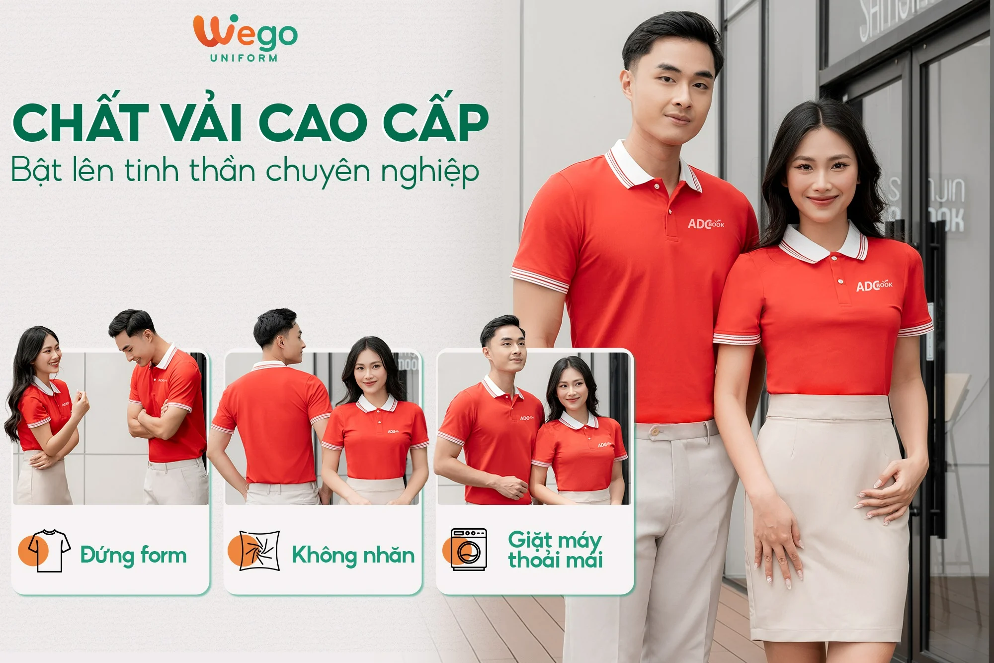 Chính vì vậy, áo đồng phục Wego luôn có độ bền cao, khả năng co giãn và thoáng khí tốt. Từ đó mang lại sự thoải mái tối đa cho người mặc, ngay cả trong thời tiết nắng nóng hay những môi trường làm việc đòi hỏi vận động nhiều hoặc trong thời gian dài.