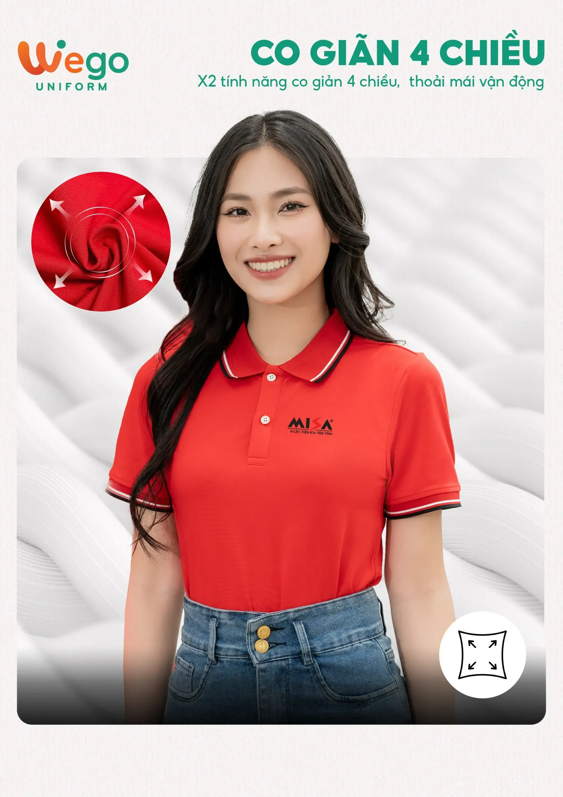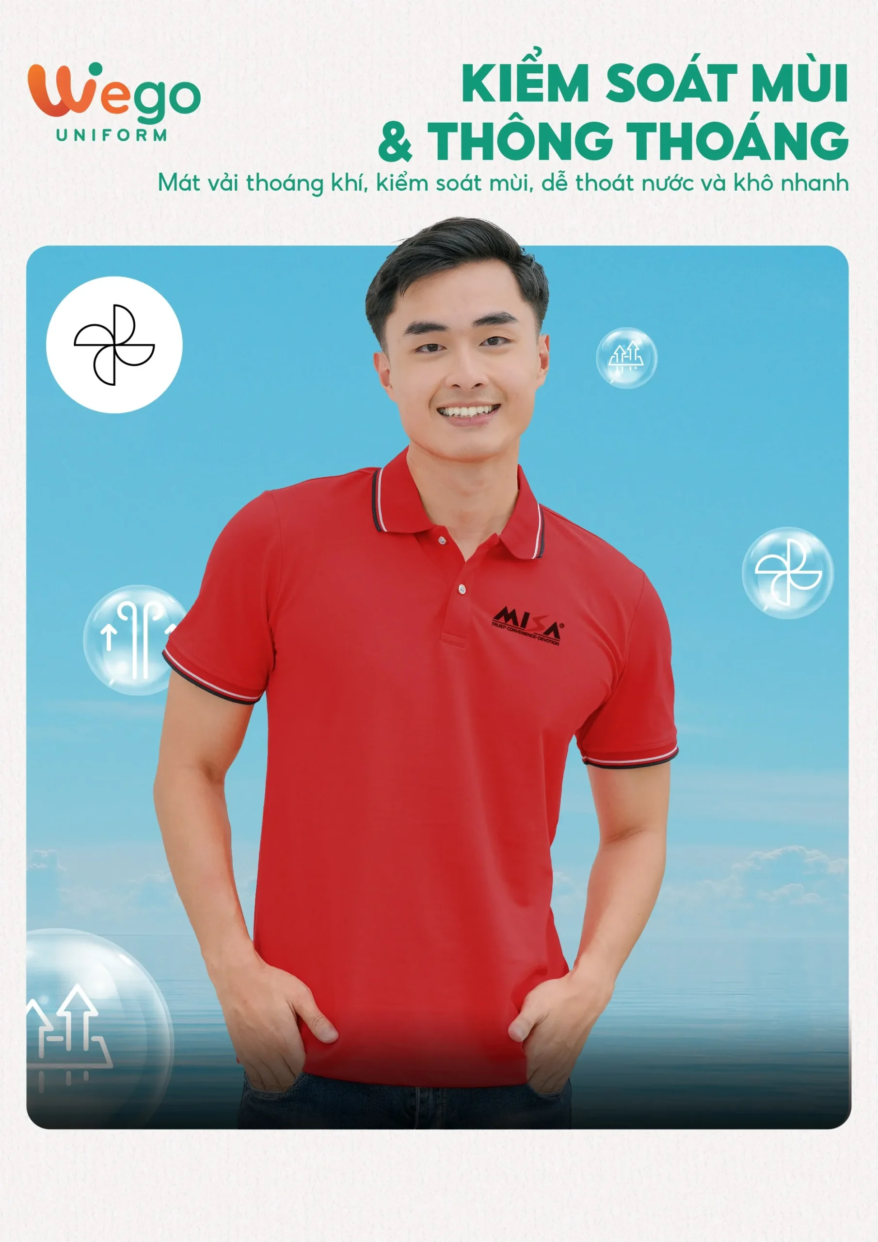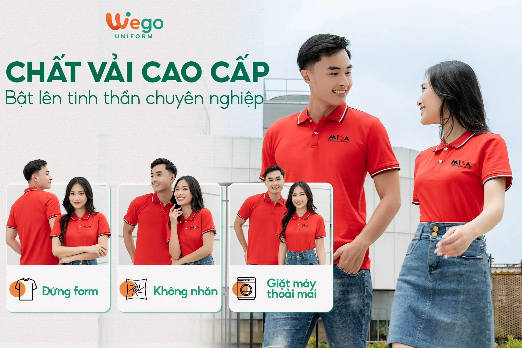 Chính vì vậy, áo đồng phục Wego luôn có độ bền cao, khả năng co giãn và thoáng khí tốt. Từ đó mang lại sự thoải mái tối đa cho người mặc, ngay cả trong thời tiết nắng nóng hay những môi trường làm việc đòi hỏi vận động nhiều hoặc trong thời gian dài.