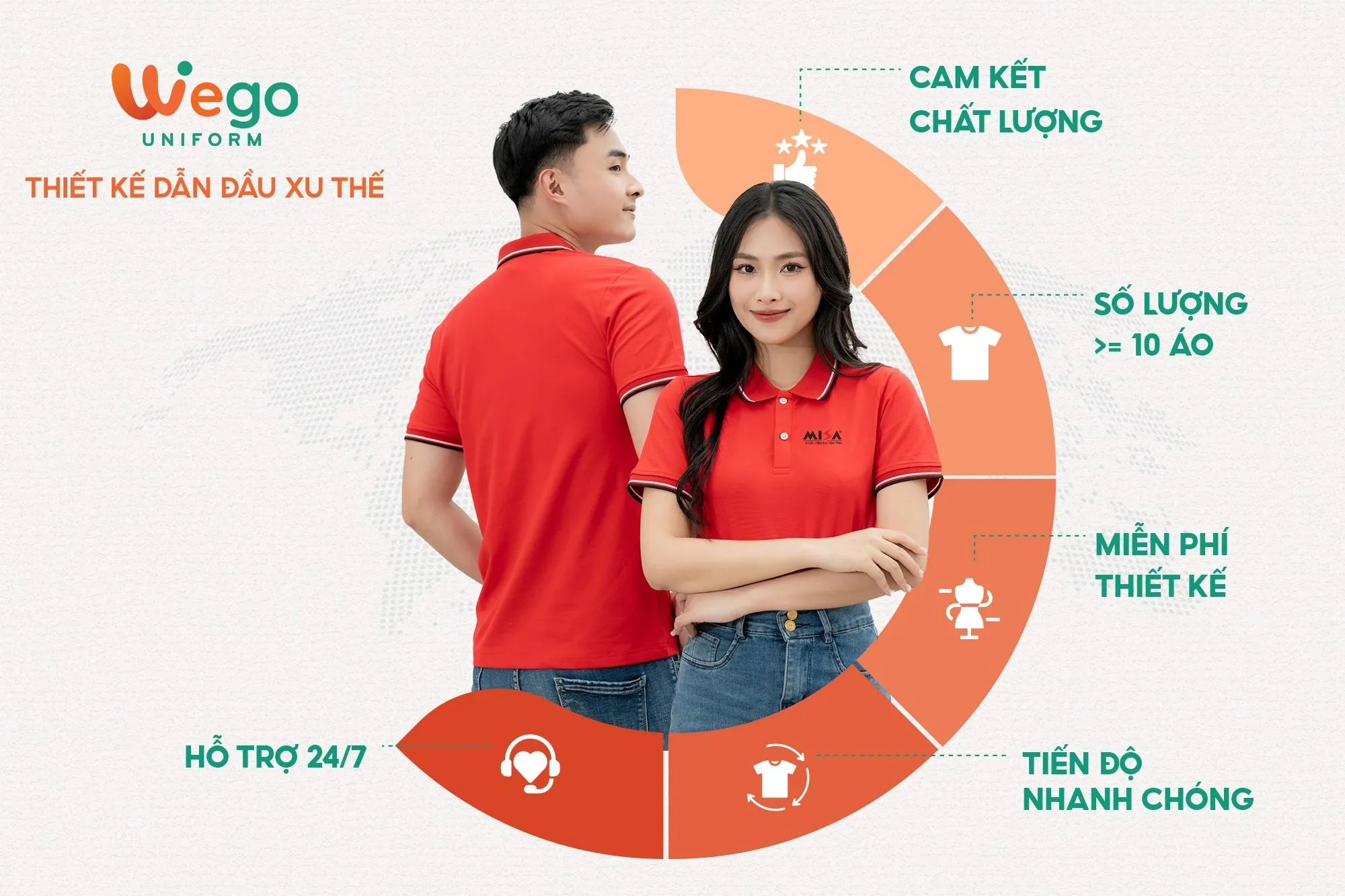 Với nhiều năm kinh nghiệm trong ngành sản xuất đồng phục, Wego tự hào là đơn vị dẫn đầu trong lĩnh vực đồng phục, trở thành đối tác đáng tin cậy của nhiều doanh nghiệp, tổ chức và cá nhân trên cả nước.