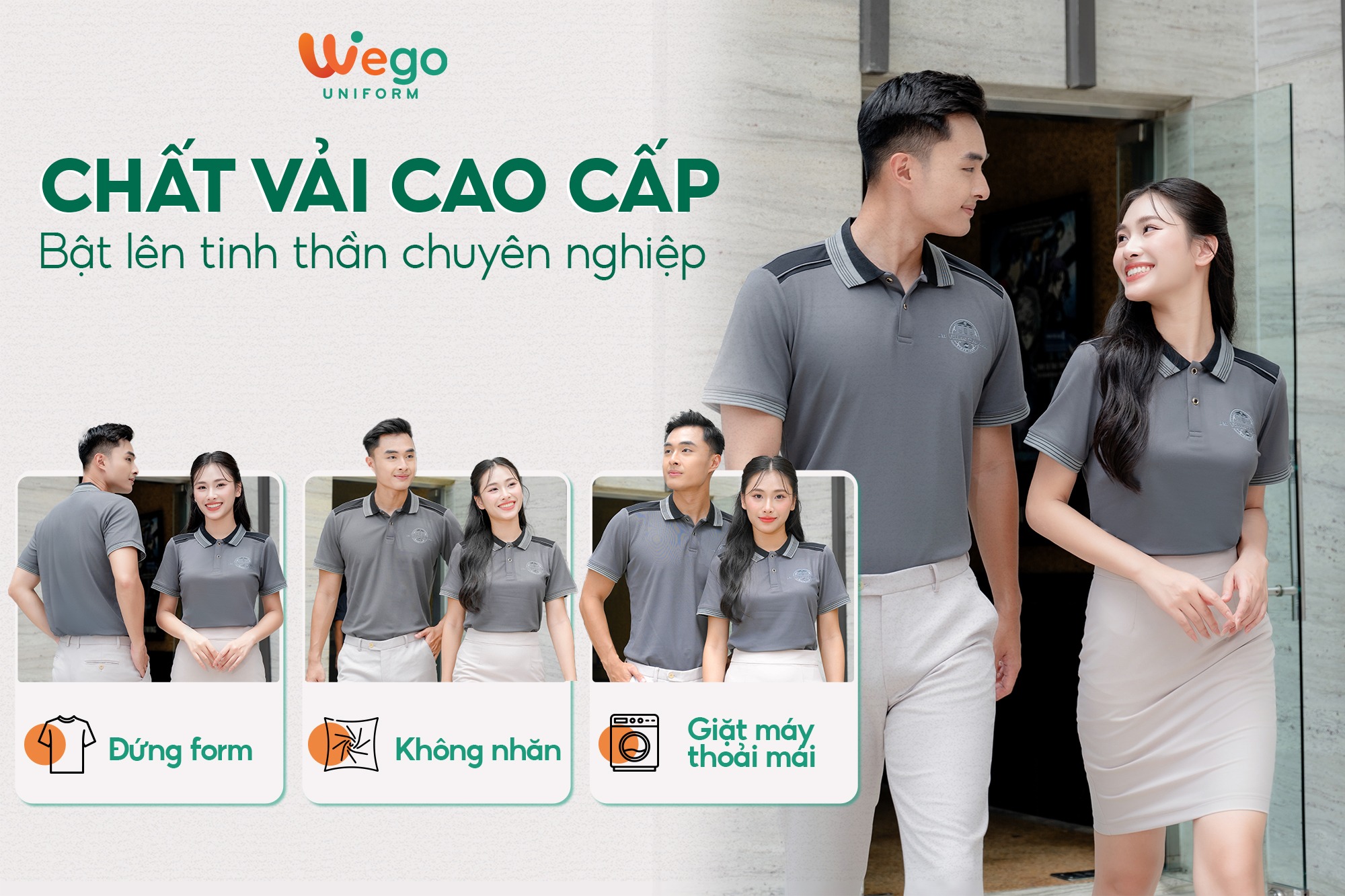 Chính vì vậy, áo đồng phục Wego luôn có độ bền cao, khả năng co giãn và thoáng khí tốt. Từ đó mang lại sự thoải mái tối đa cho người mặc, ngay cả trong thời tiết nắng nóng hay những môi trường làm việc đòi hỏi vận động nhiều hoặc trong thời gian dài.