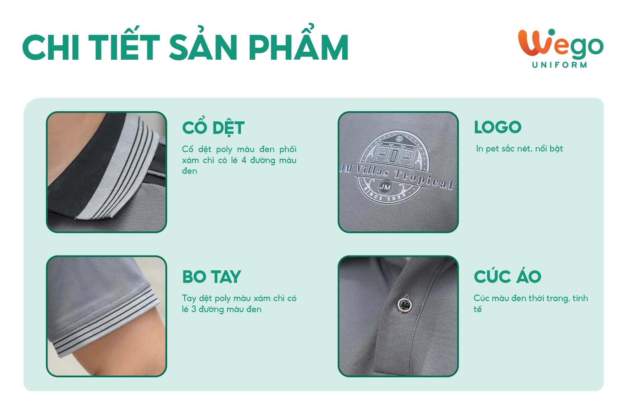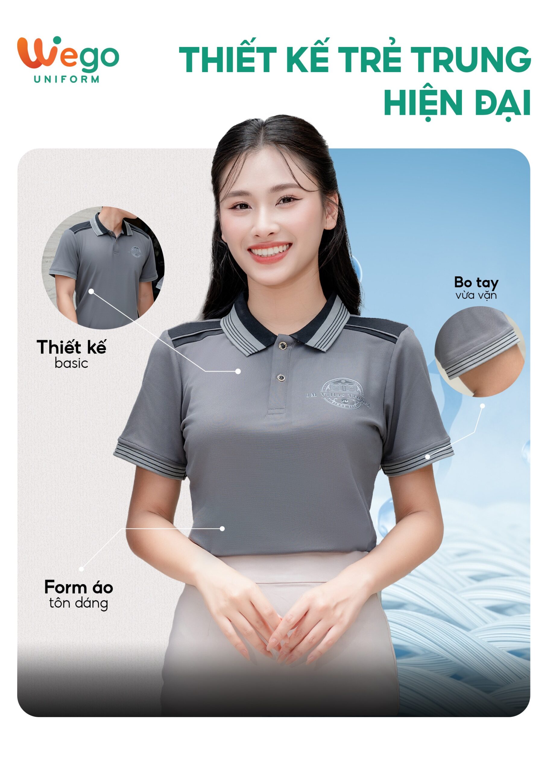 - Được thiết kế độc quyền bởi Wego Uniform, vừa nâng cao tính thời trang, vừa giúp nâng cao nhận diện thương hiệu