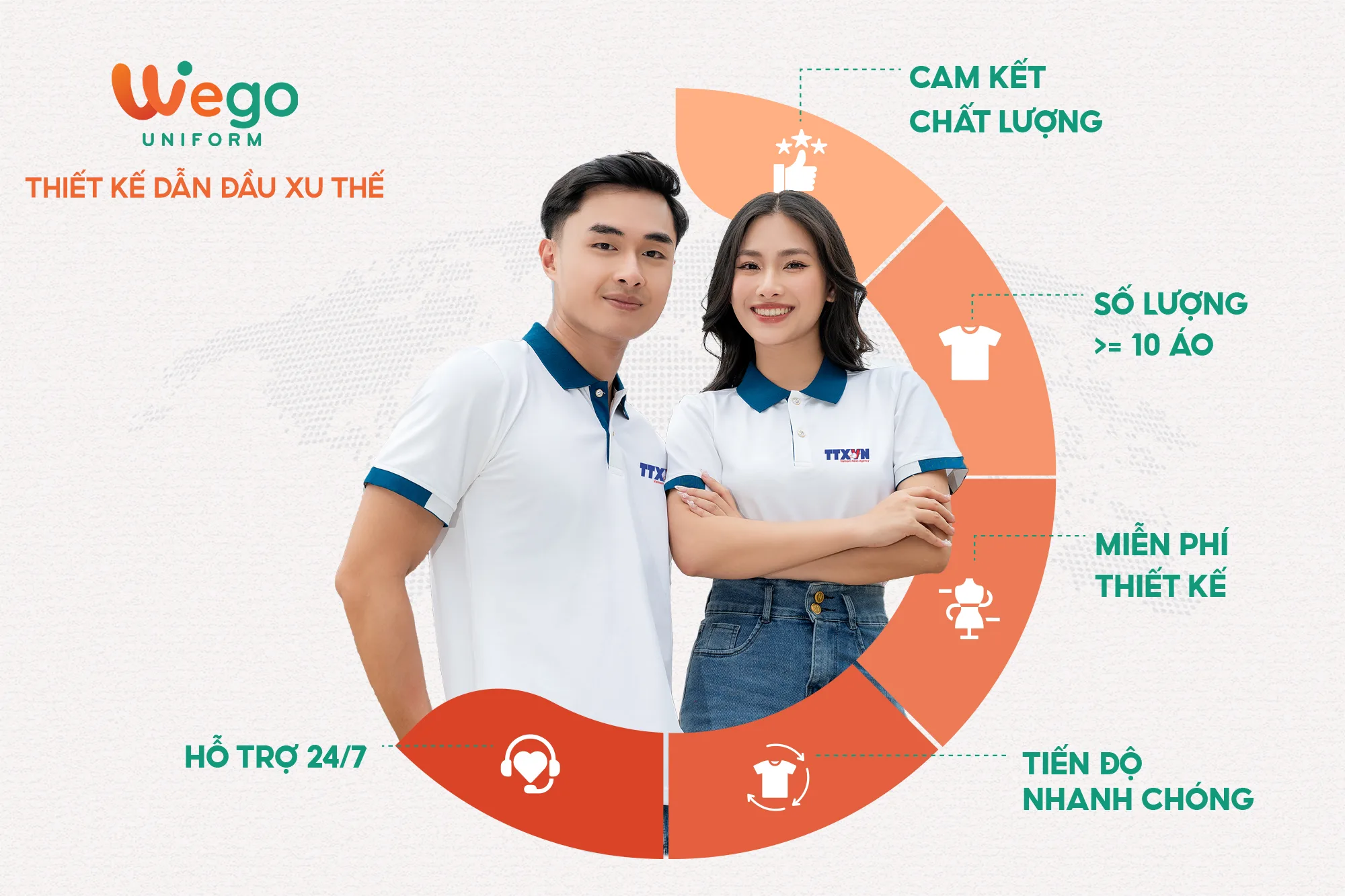 Với nhiều năm kinh nghiệm trong ngành sản xuất đồng phục, Wego tự hào là đơn vị dẫn đầu trong lĩnh vực đồng phục, trở thành đối tác đáng tin cậy của nhiều doanh nghiệp, tổ chức và cá nhân trên cả nước.