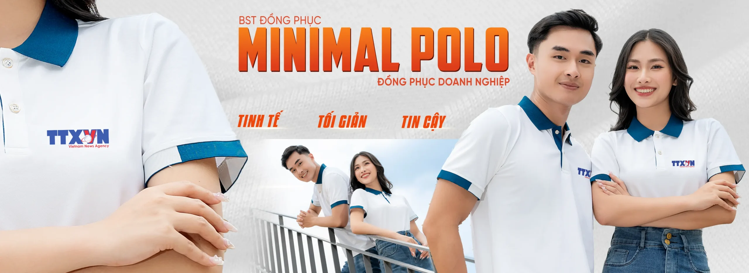 Áo đồng phục Minimal Polo: Màu trắng phối cổ dệt màu cổ vịt 01 sử dụng chất liệu Airycool – Đây là loại vải đầu tiên trên thế giới được nghiên cứu trong phòng thí nghiệm với thành phần: 55% cotton, 42% Polyester, 3% Spandex.