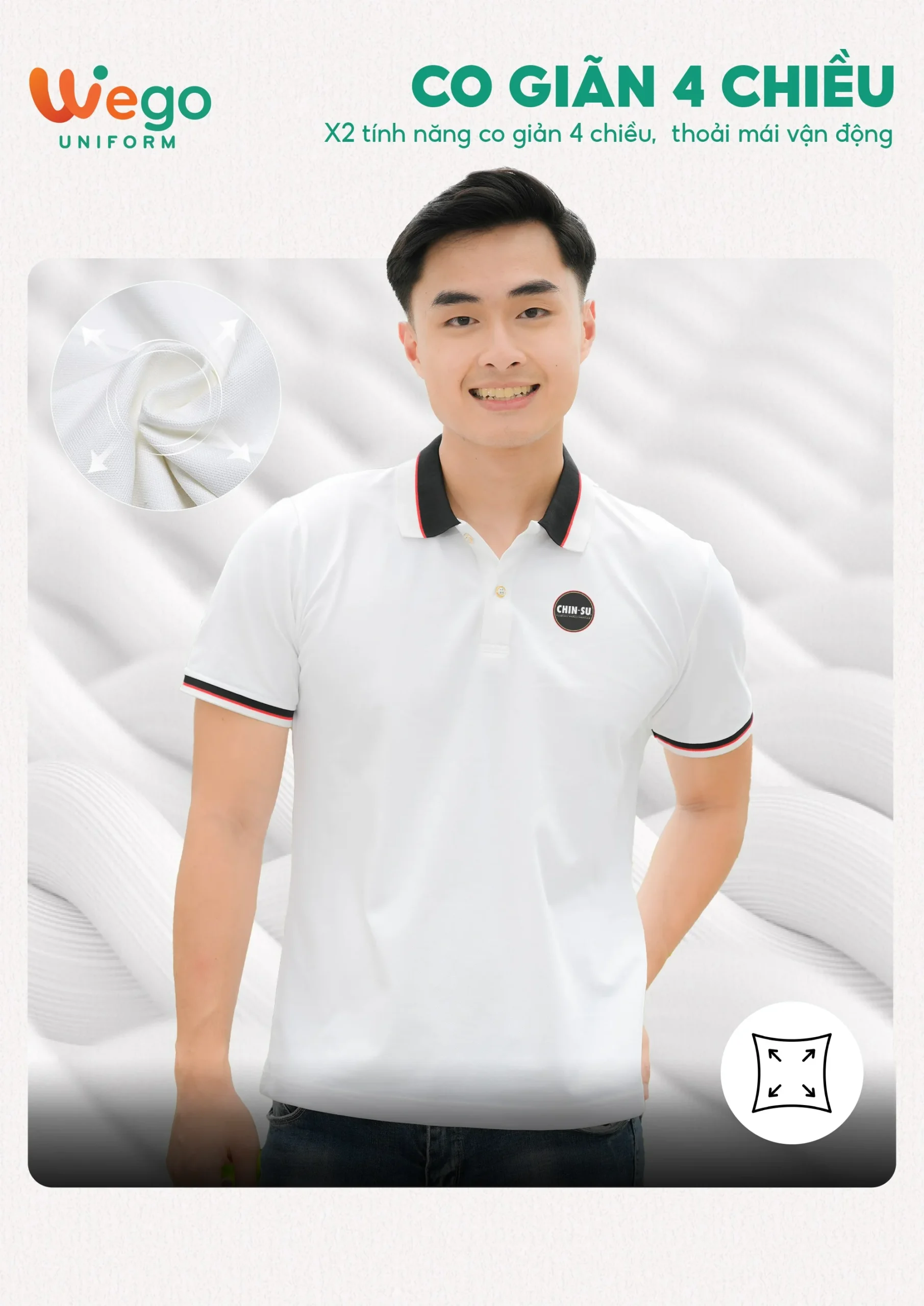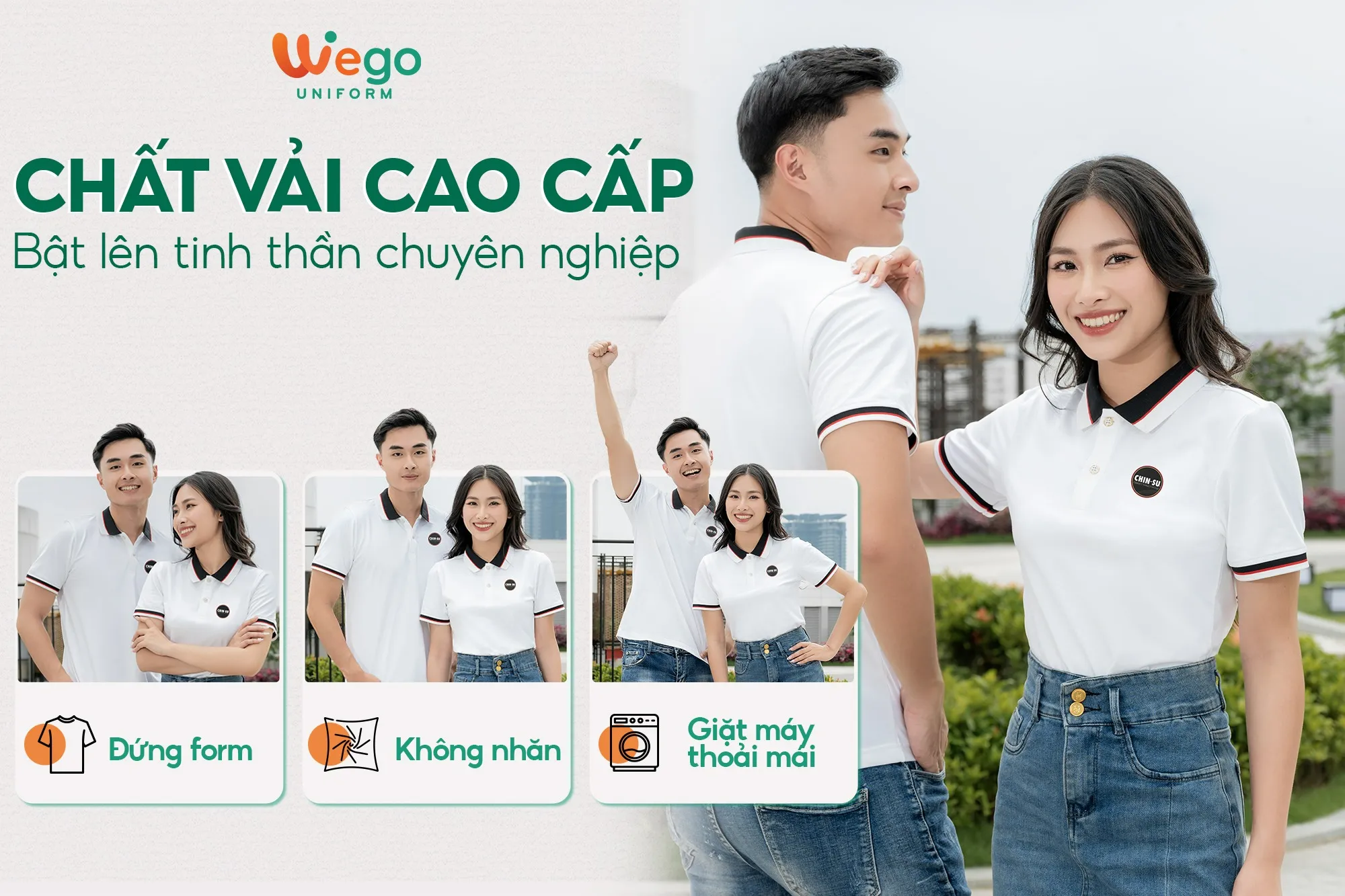 Chính vì vậy, áo đồng phục Wego luôn có độ bền cao, khả năng co giãn và thoáng khí tốt. Từ đó mang lại sự thoải mái tối đa cho người mặc, ngay cả trong thời tiết nắng nóng hay những môi trường làm việc đòi hỏi vận động nhiều hoặc trong thời gian dài.