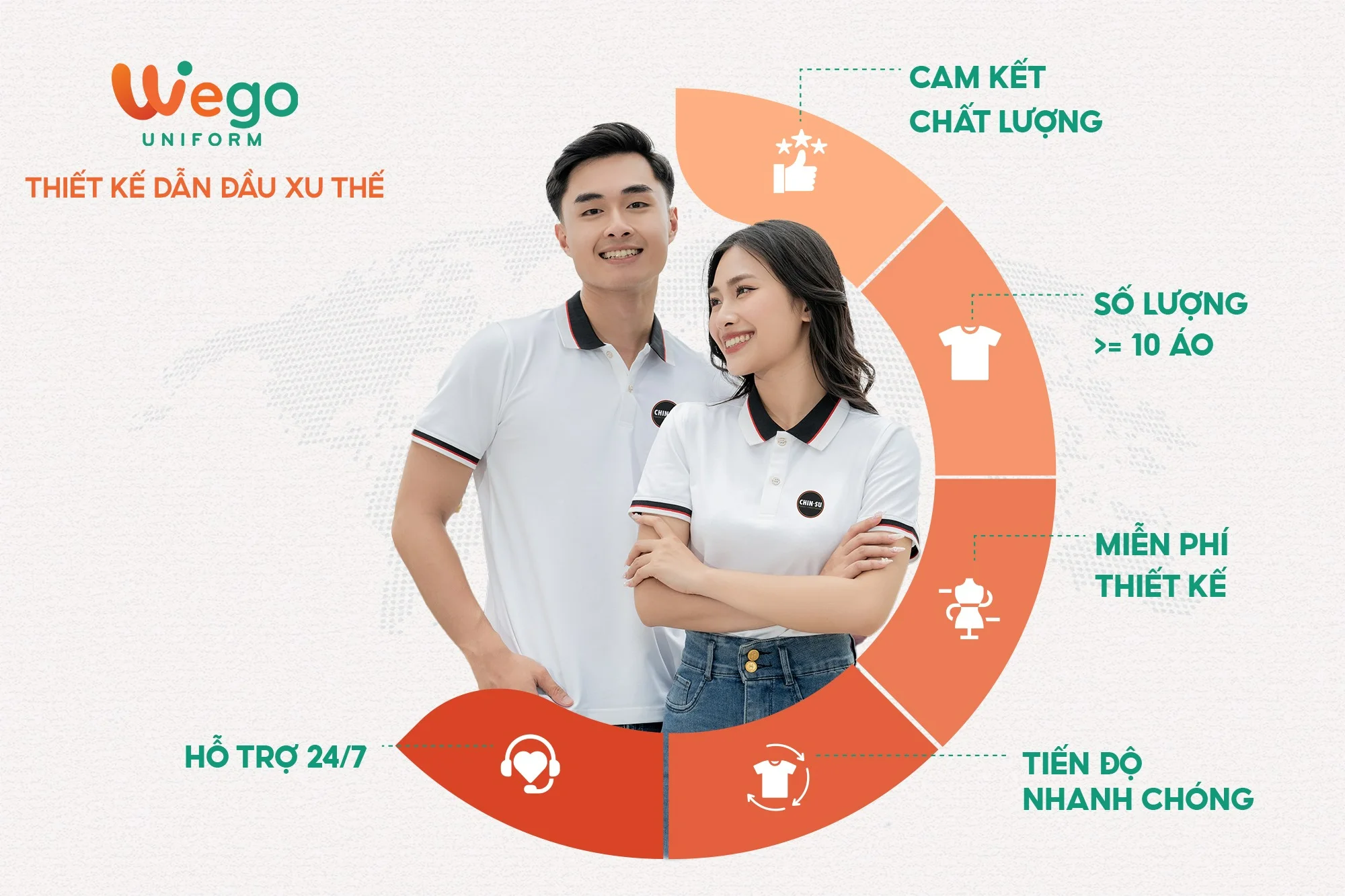 Với nhiều năm kinh nghiệm trong ngành sản xuất đồng phục, Wego tự hào là đơn vị dẫn đầu trong lĩnh vực đồng phục, trở thành đối tác đáng tin cậy của nhiều doanh nghiệp, tổ chức và cá nhân trên cả nước.