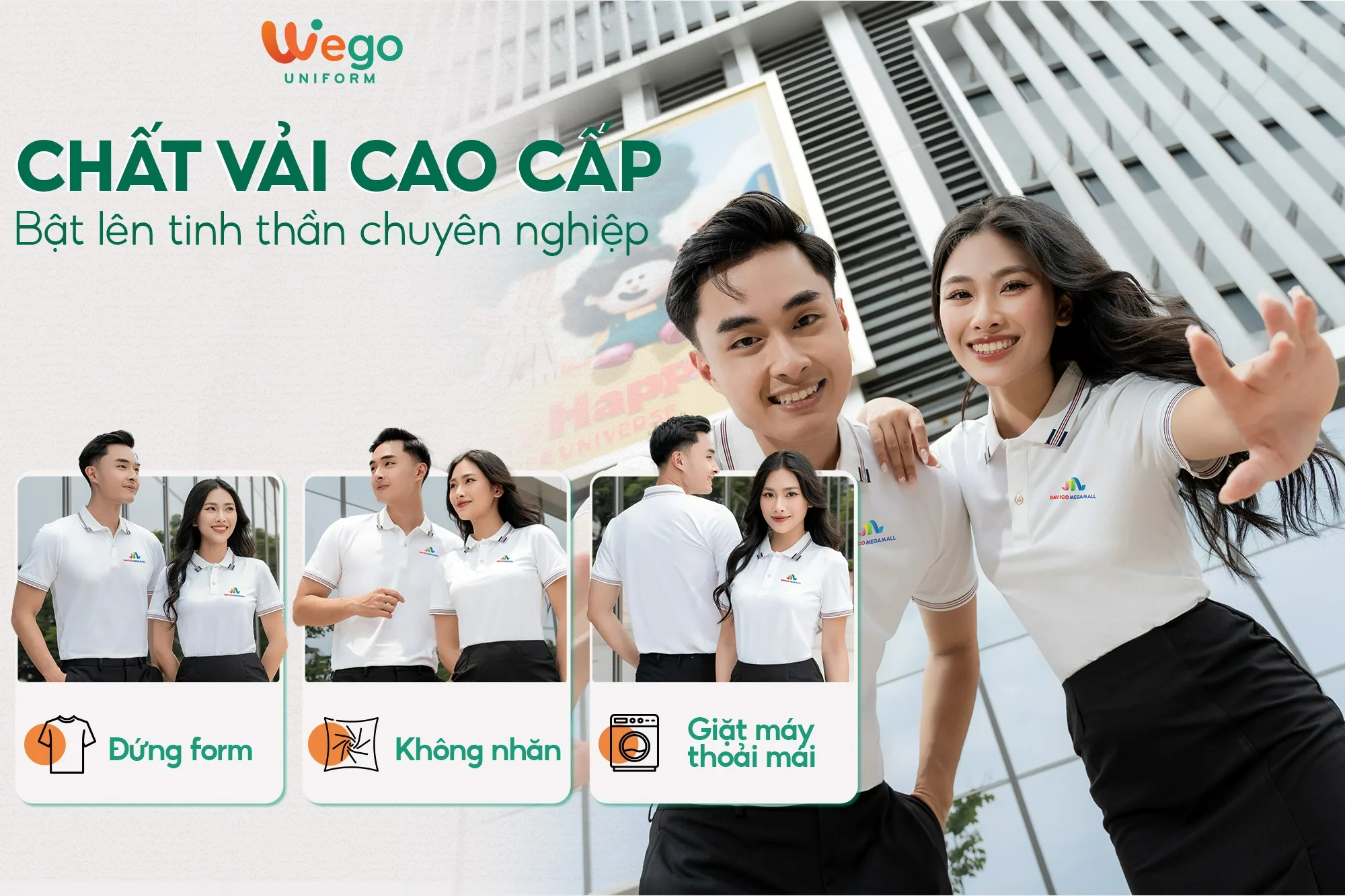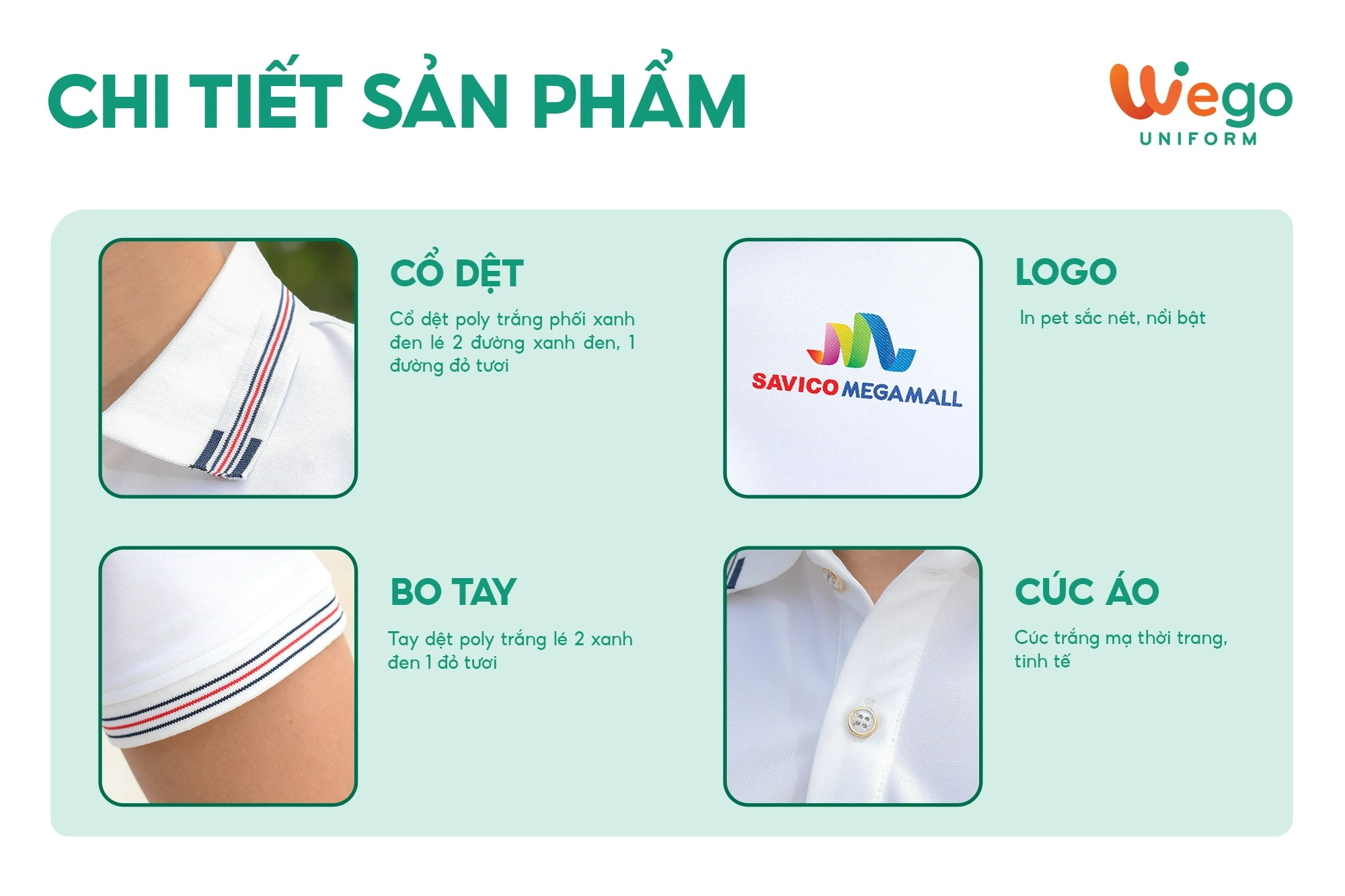 - Được thiết kế độc quyền bởi Wego Uniform, vừa nâng cao tính thời trang, vừa giúp nâng cao nhận diện thương hiệu