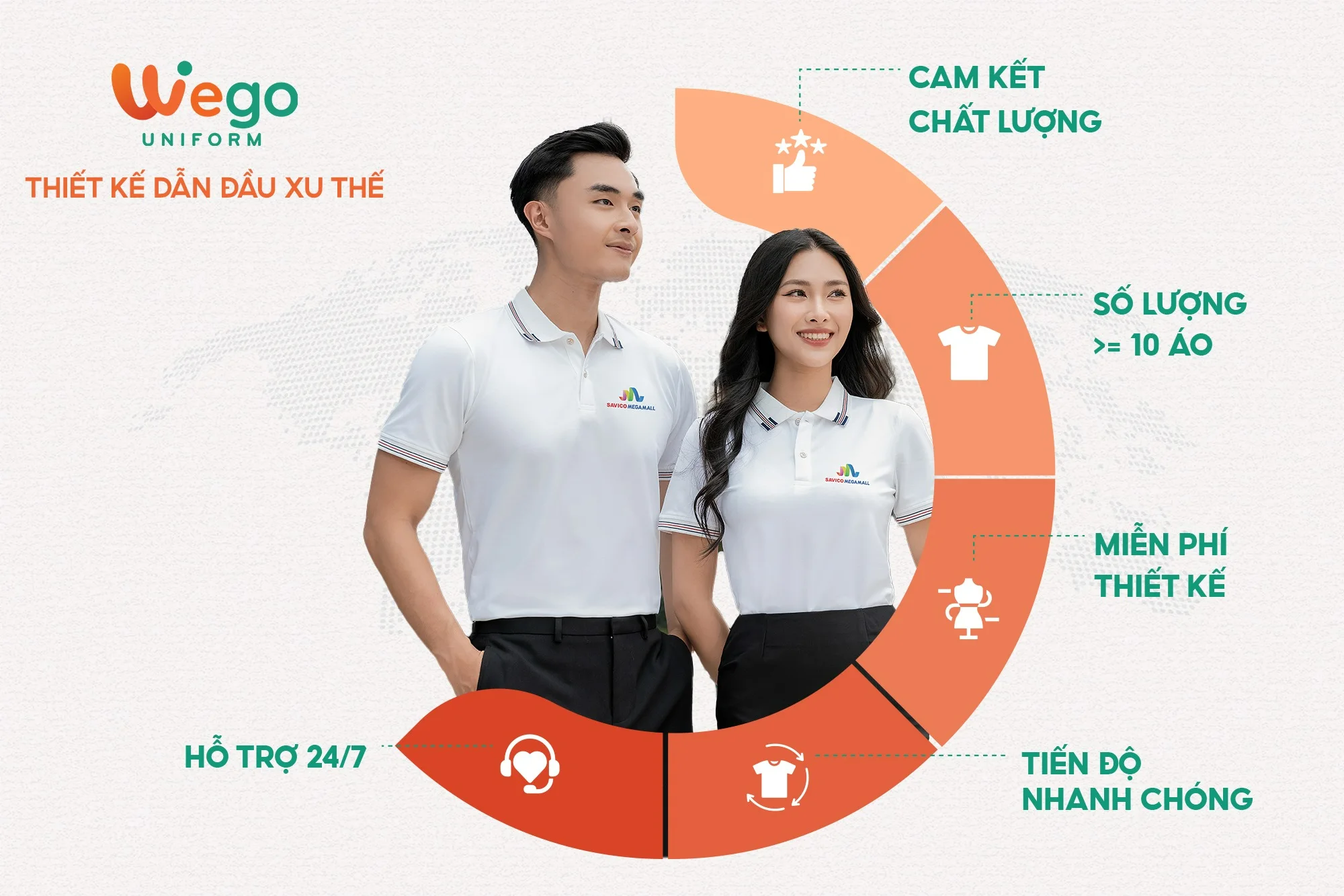 Với nhiều năm kinh nghiệm trong ngành sản xuất đồng phục, Wego tự hào là đơn vị dẫn đầu trong lĩnh vực đồng phục, trở thành đối tác đáng tin cậy của nhiều doanh nghiệp, tổ chức và cá nhân trên cả nước.