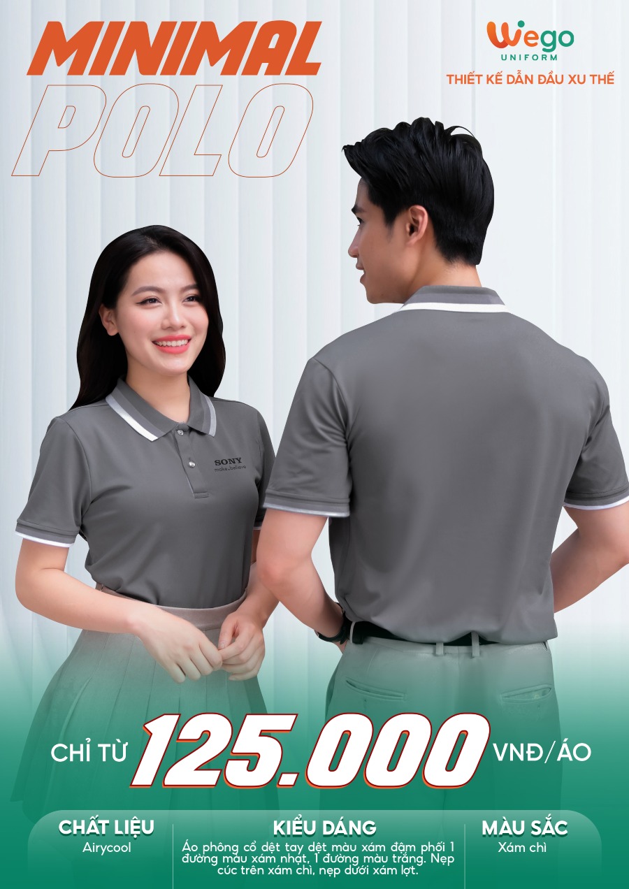 Áo phông thun đồng phục Minimal Polo: Màu xám chì 01 là một trong những mẫu áo đồng phục hot nhất trong bộ sưu tập mới tại Wego với tên gọi – BST đồng phục Minimal Polo. Đây cũng là một trong những mẫu áo được nhiều doanh nghiệp yêu thích và lựa chọn khi xây dựng hình ảnh đồng phục cho đội ngũ nhờ khả năng kết hợp hài hòa giữa thẩm mỹ, chất lượng và tính ứng dụng cao.