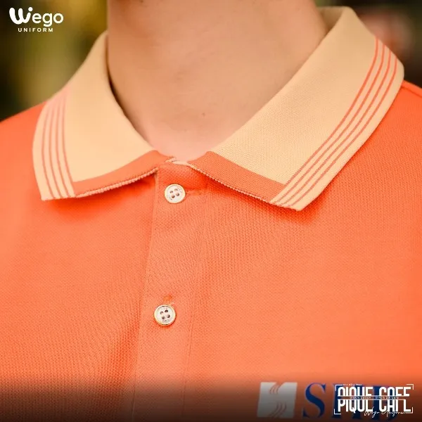 Áo thun phông đồng phục Pique Cafe: Màu cam cổ dệt màu be phối cam là một trong những thiết kế đồng phục ấn tượng thuộc BST Pique Cafe 2025 của Wego Uniform. Sở hữu chất vải tinh hoa cao cấp, kết hợp phong cách thiết kế tối giản nhưng vẫn thời trang, chuyên nghiệp, mẫu áo đang được đông đảo doanh nghiệp yêu thích và lựa chọn nhằm xây dựng và truyền thông hình ảnh thương hiệu.