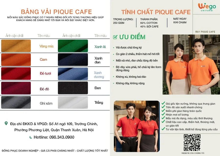 Chính vì vậy, áo đồng phục Wego luôn có độ bền cao, khả năng co giãn và thoáng khí tốt. Từ đó mang lại sự thoải mái tối đa cho người mặc, ngay cả trong thời tiết nắng nóng hay những môi trường làm việc đòi hỏi vận động nhiều hoặc trong thời gian dài.