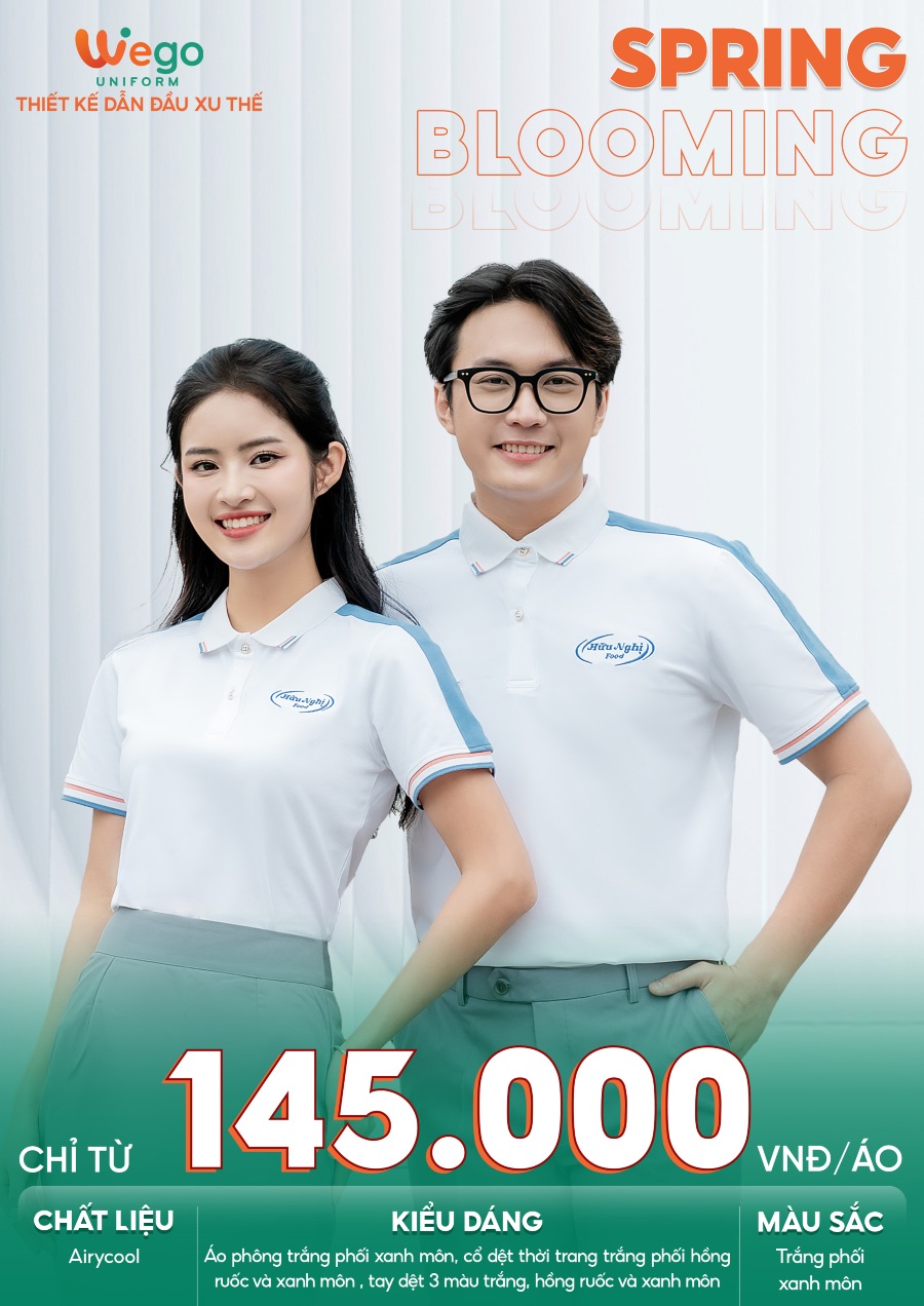 Áo thun phông đồng phục Spring: Blooming màu trắng phối xanh đang trở thành tâm điểm trong bộ sưu tập đồng phục Spring: Blooming của Wego. Không chỉ nổi bật với thiết kế hiện đại và tinh tế, mẫu áo này còn được nhiều doanh nghiệp lựa chọn nhờ khả năng tôn vinh hình ảnh chuyên nghiệp và đồng bộ cho đội ngũ.