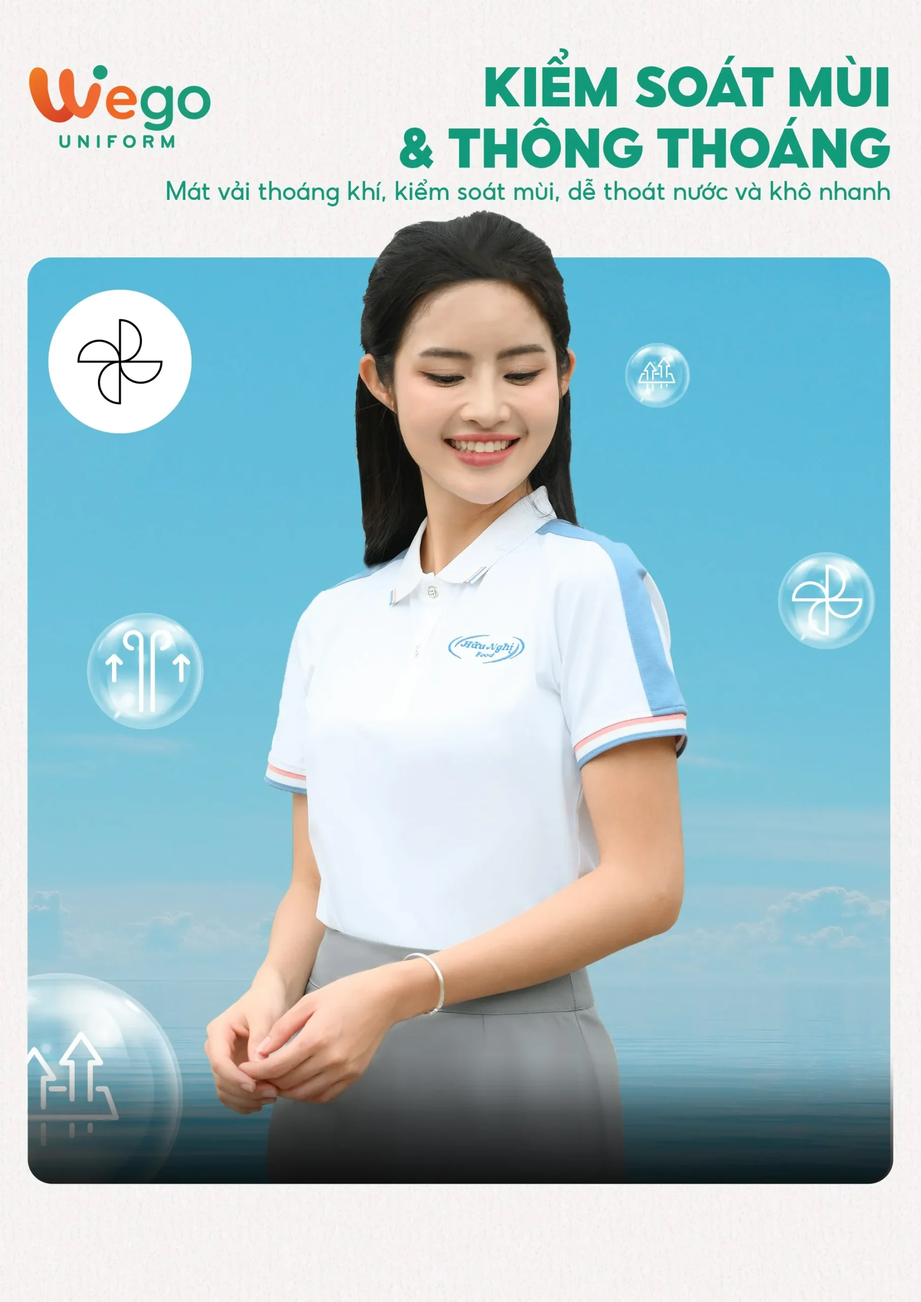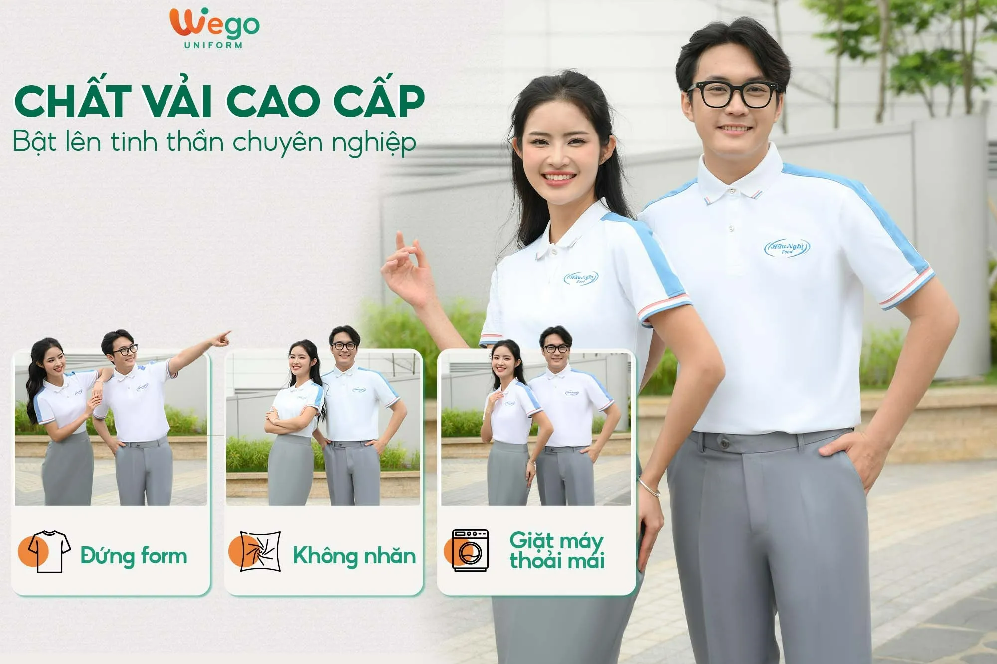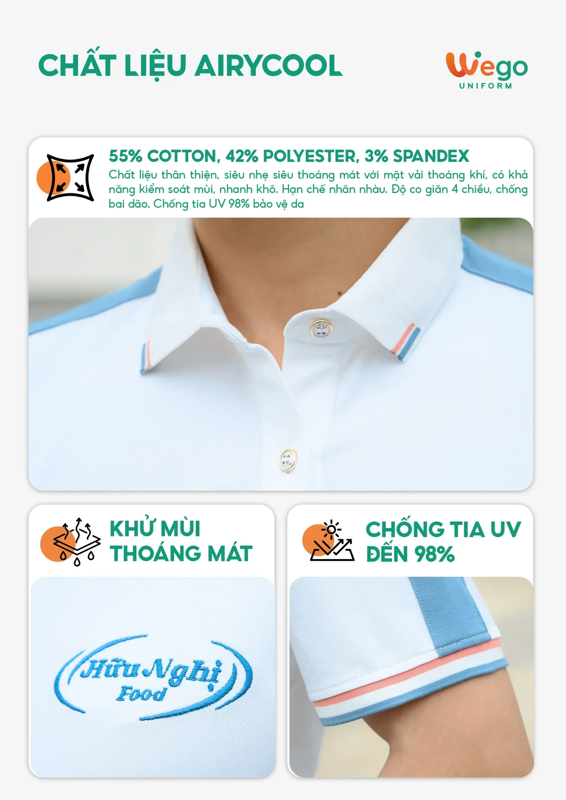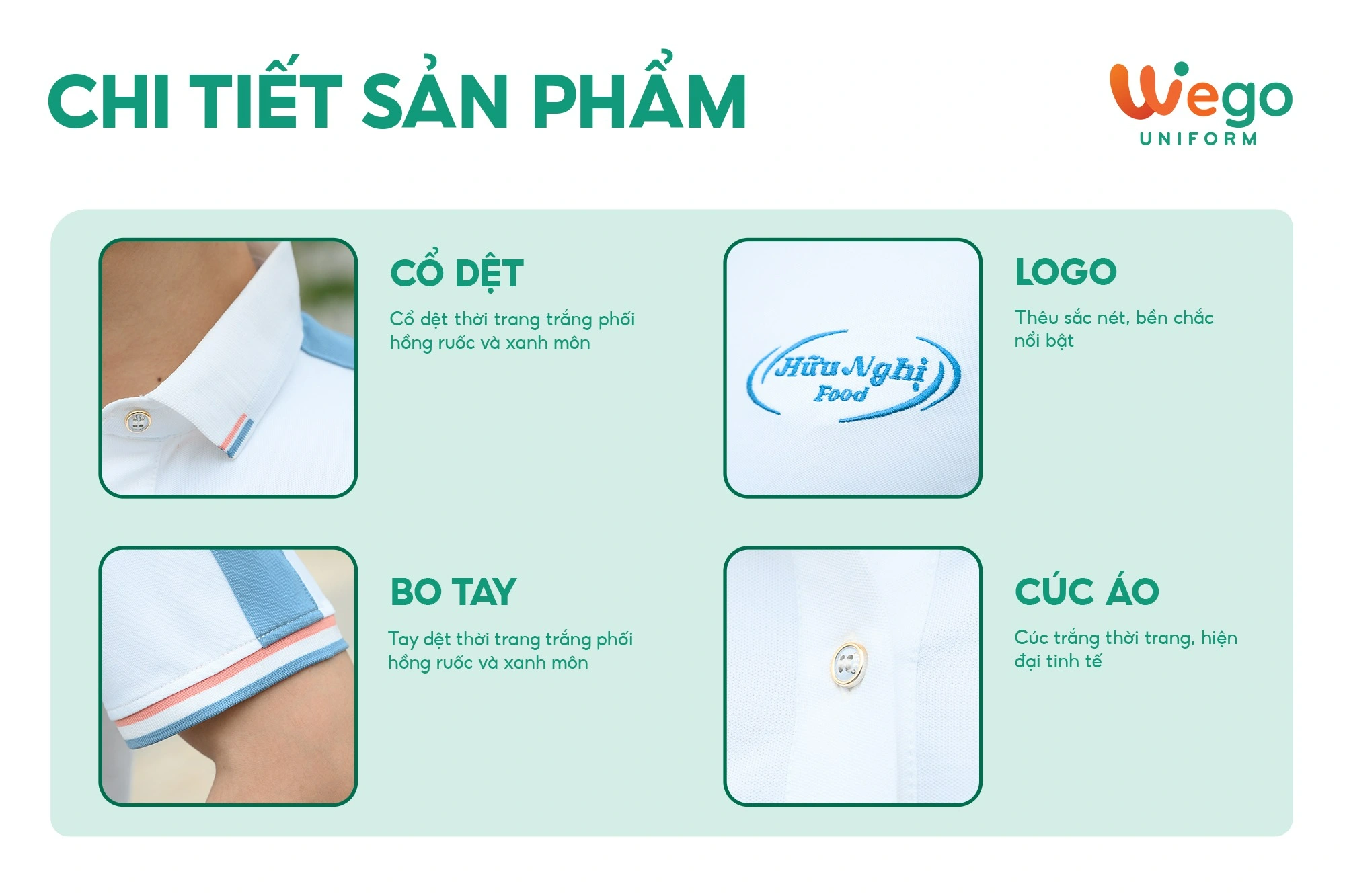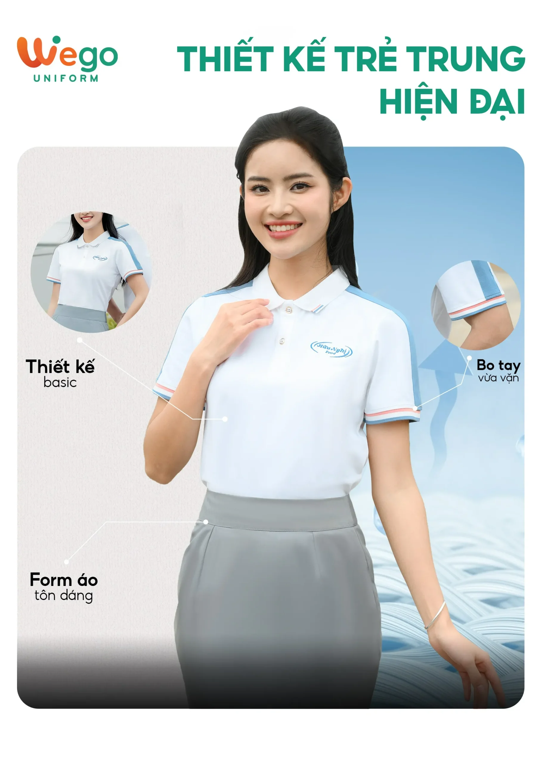 - Được thiết kế độc quyền bởi Wego Uniform, vừa nâng cao tính thời trang, vừa giúp nâng cao nhận diện thương hiệu