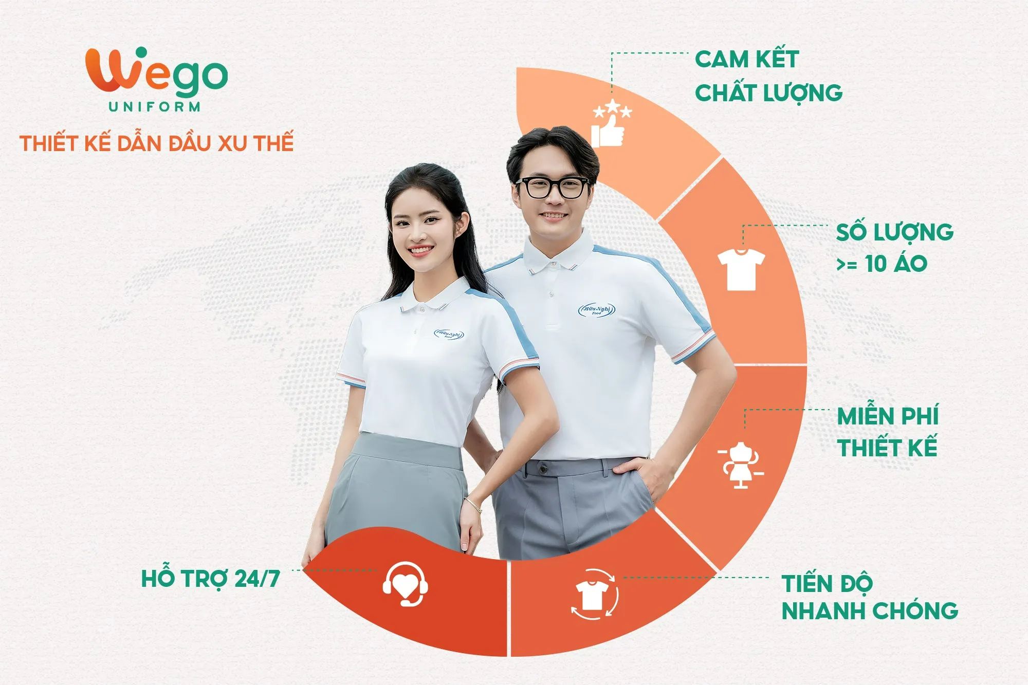 Với nhiều năm kinh nghiệm trong ngành sản xuất đồng phục, Wego tự hào là đơn vị dẫn đầu trong lĩnh vực đồng phục, trở thành đối tác đáng tin cậy của nhiều doanh nghiệp, tổ chức và cá nhân trên cả nước.