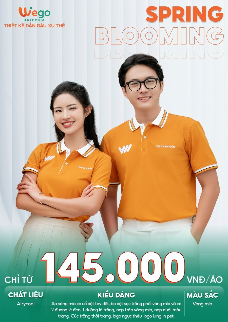 Áo thun phông đồng phục Spring: Blooming màu vàng mía đang trở thành tâm điểm trong bộ sưu tập đồng phục Spring: Blooming của Wego. Không chỉ nổi bật với thiết kế hiện đại và tinh tế, mẫu áo này còn được nhiều doanh nghiệp lựa chọn nhờ khả năng tôn vinh hình ảnh chuyên nghiệp và đồng bộ cho đội ngũ.