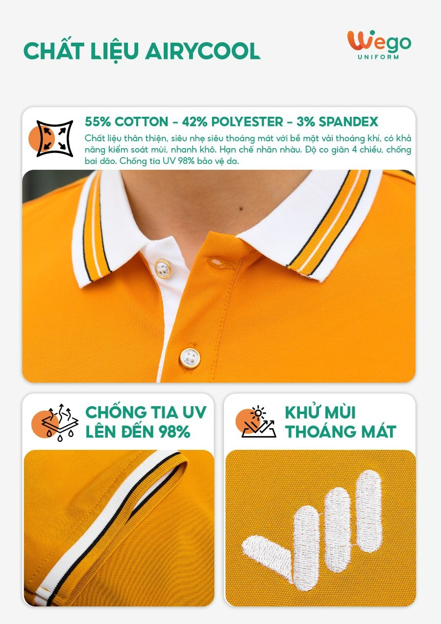 Chính vì vậy, áo đồng phục Wego luôn có độ bền cao, khả năng co giãn và thoáng khí tốt. Từ đó mang lại sự thoải mái tối đa cho người mặc, ngay cả trong thời tiết nắng nóng hay những môi trường làm việc đòi hỏi vận động nhiều hoặc trong thời gian dài.