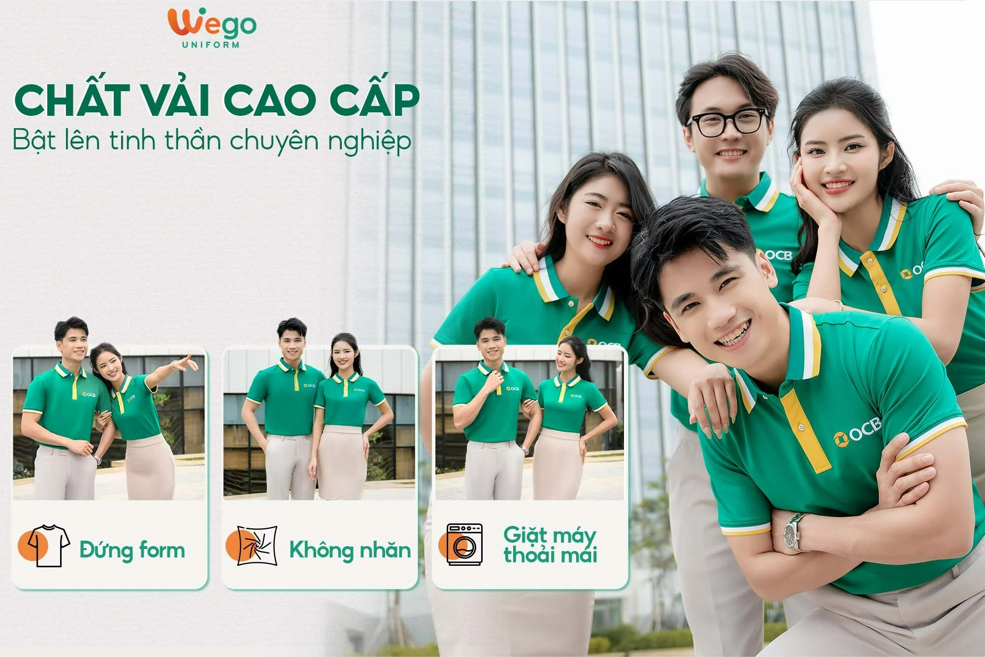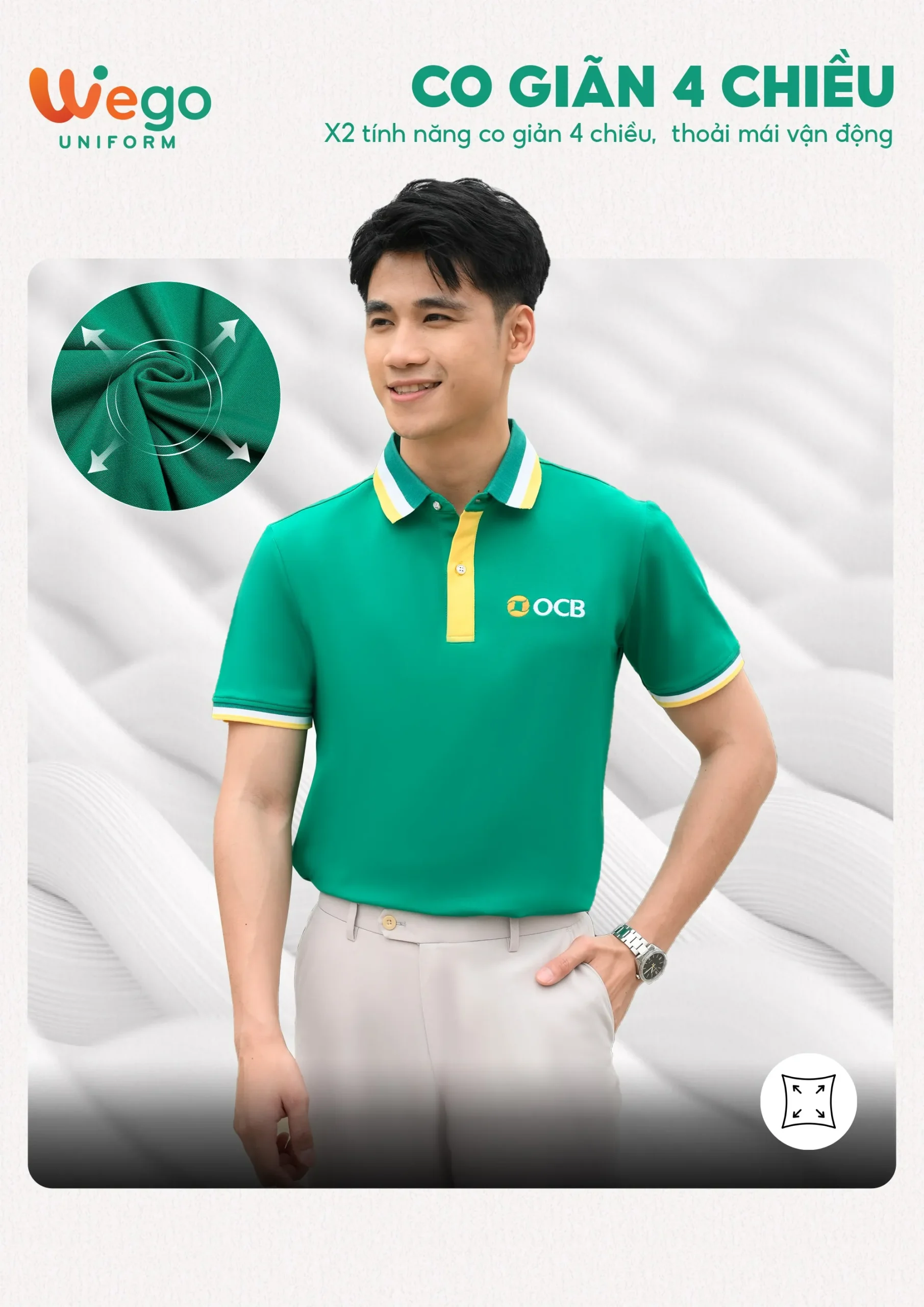 Chính vì vậy, áo đồng phục Wego luôn có độ bền cao, khả năng co giãn và thoáng khí tốt. Từ đó mang lại sự thoải mái tối đa cho người mặc, ngay cả trong thời tiết nắng nóng hay những môi trường làm việc đòi hỏi vận động nhiều hoặc trong thời gian dài.