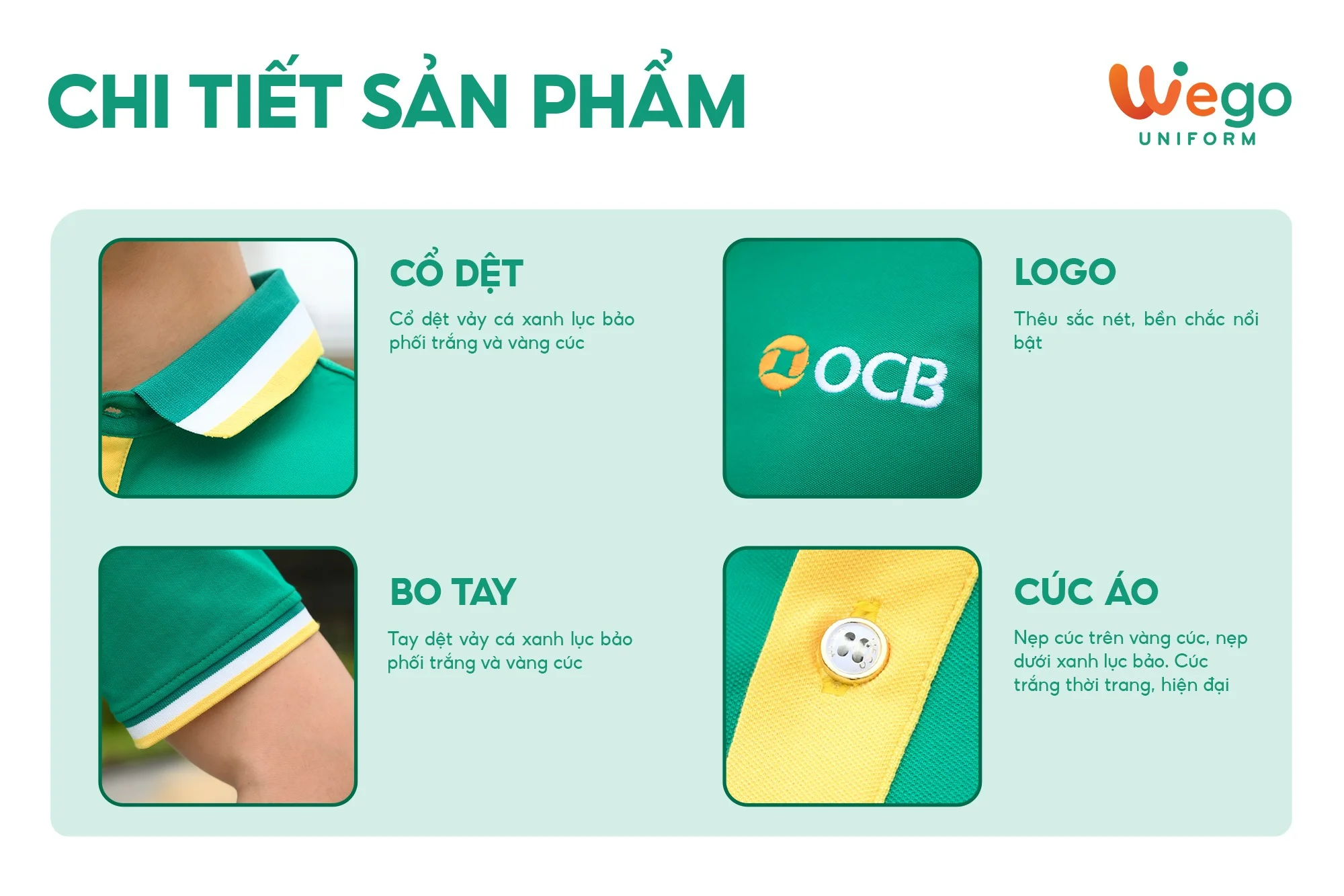- Được thiết kế độc quyền bởi Wego Uniform, vừa nâng cao tính thời trang, vừa giúp nâng cao nhận diện thương hiệu