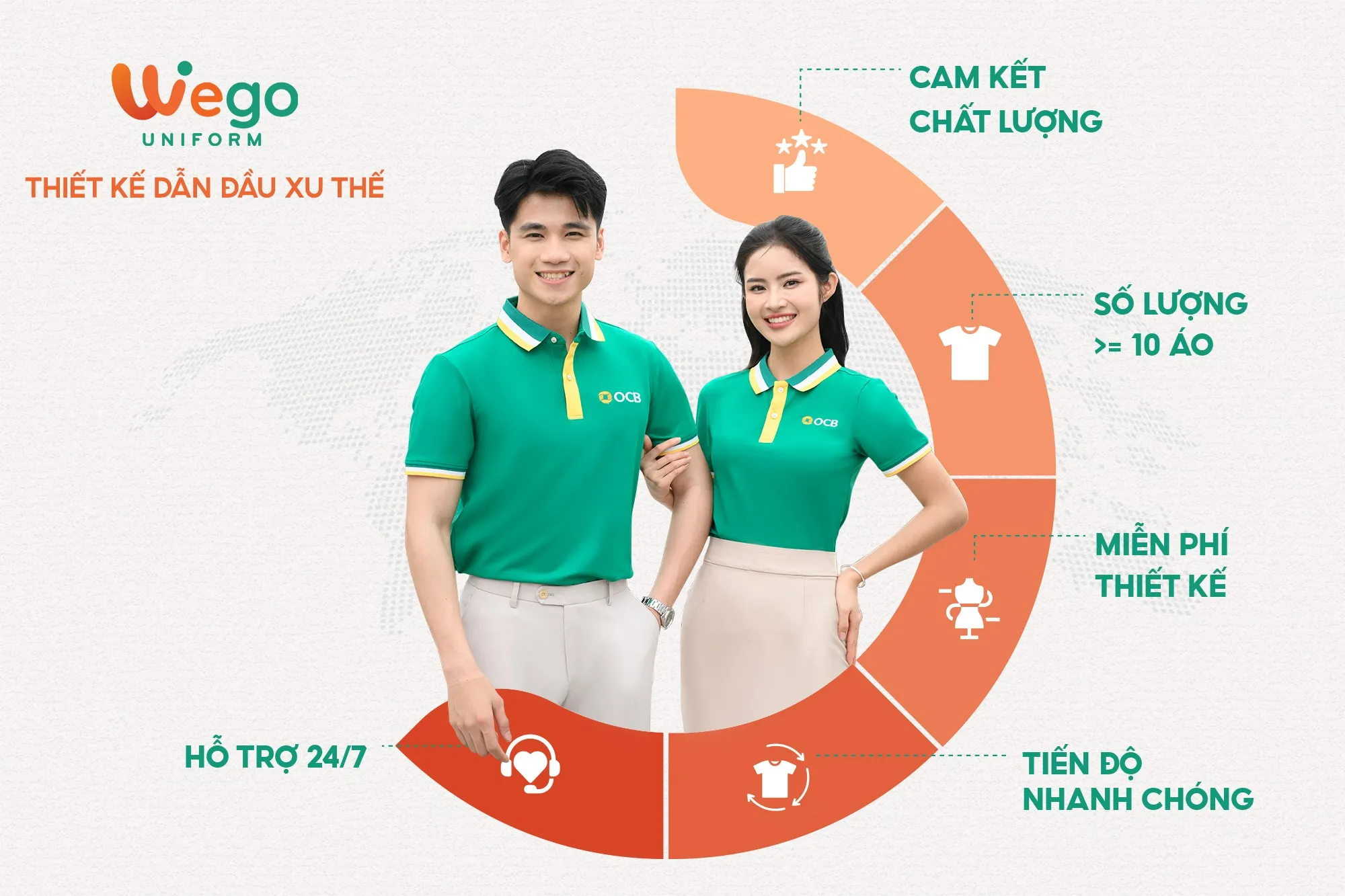 Với nhiều năm kinh nghiệm trong ngành sản xuất đồng phục, Wego tự hào là đơn vị dẫn đầu trong lĩnh vực đồng phục, trở thành đối tác đáng tin cậy của nhiều doanh nghiệp, tổ chức và cá nhân trên cả nước.