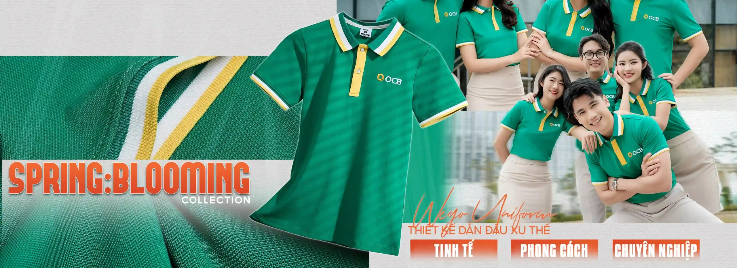 Áo thun phông đồng phục Spring: Blooming màu xanh lục bảo đang trở thành tâm điểm trong bộ sưu tập đồng phục Spring: Blooming của Wego. Không chỉ nổi bật với thiết kế hiện đại và tinh tế, mẫu áo này còn được nhiều doanh nghiệp lựa chọn nhờ khả năng tôn vinh hình ảnh chuyên nghiệp và đồng bộ cho đội ngũ.