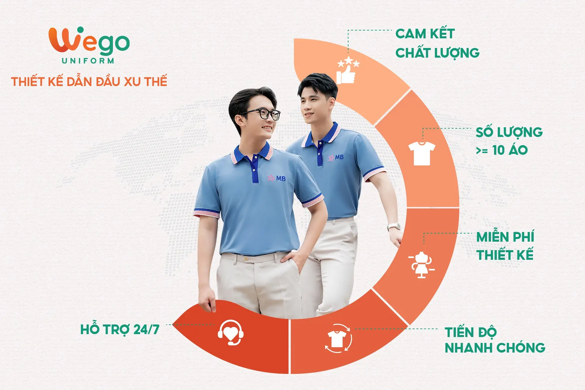 Với nhiều năm kinh nghiệm trong ngành sản xuất đồng phục, Wego tự hào là đơn vị dẫn đầu trong lĩnh vực đồng phục, trở thành đối tác đáng tin cậy của nhiều doanh nghiệp, tổ chức và cá nhân trên cả nước.