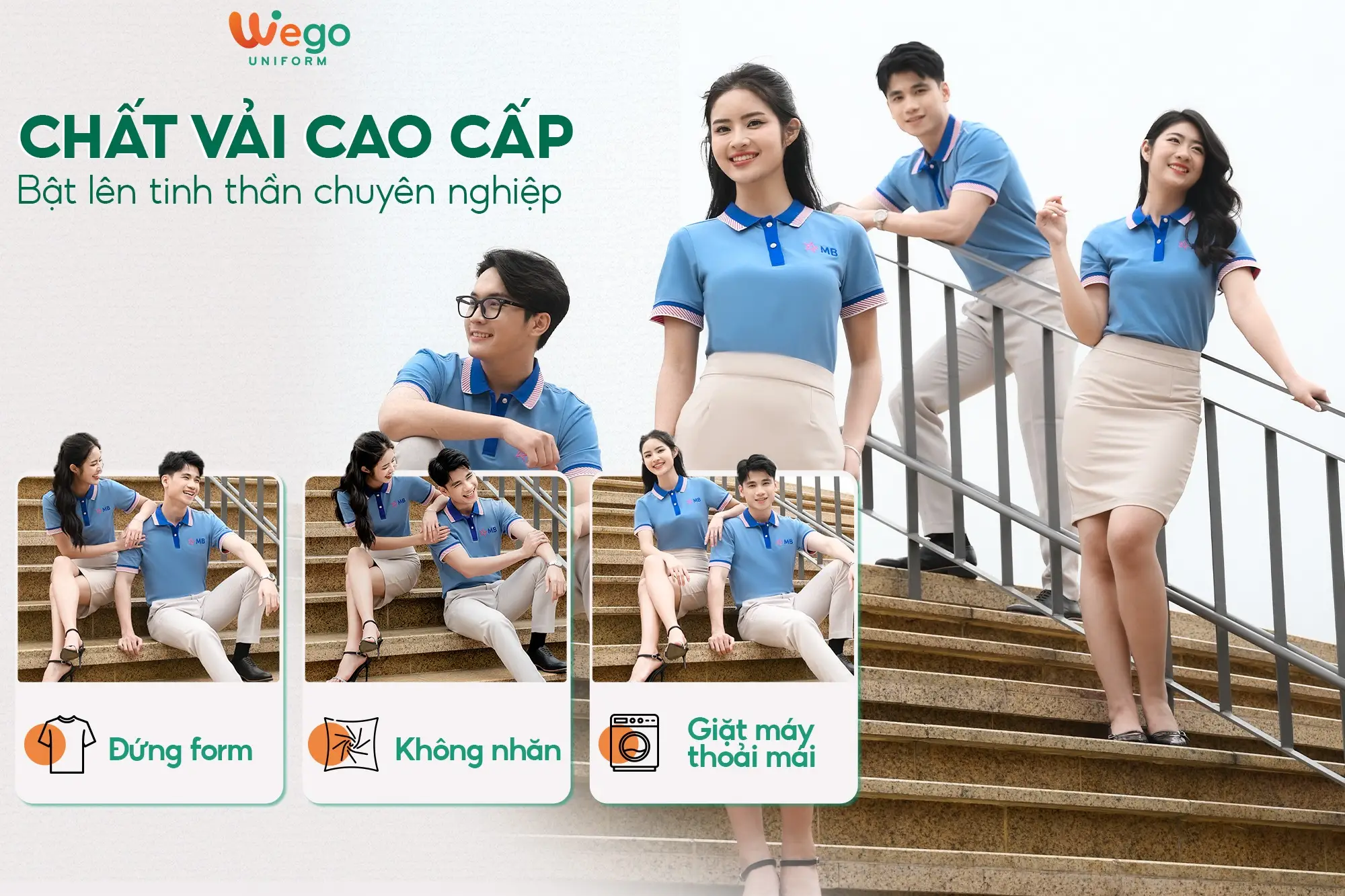 Chính vì vậy, áo đồng phục Wego luôn có độ bền cao, khả năng co giãn và thoáng khí tốt. Từ đó mang lại sự thoải mái tối đa cho người mặc, ngay cả trong thời tiết nắng nóng hay những môi trường làm việc đòi hỏi vận động nhiều hoặc trong thời gian dài.