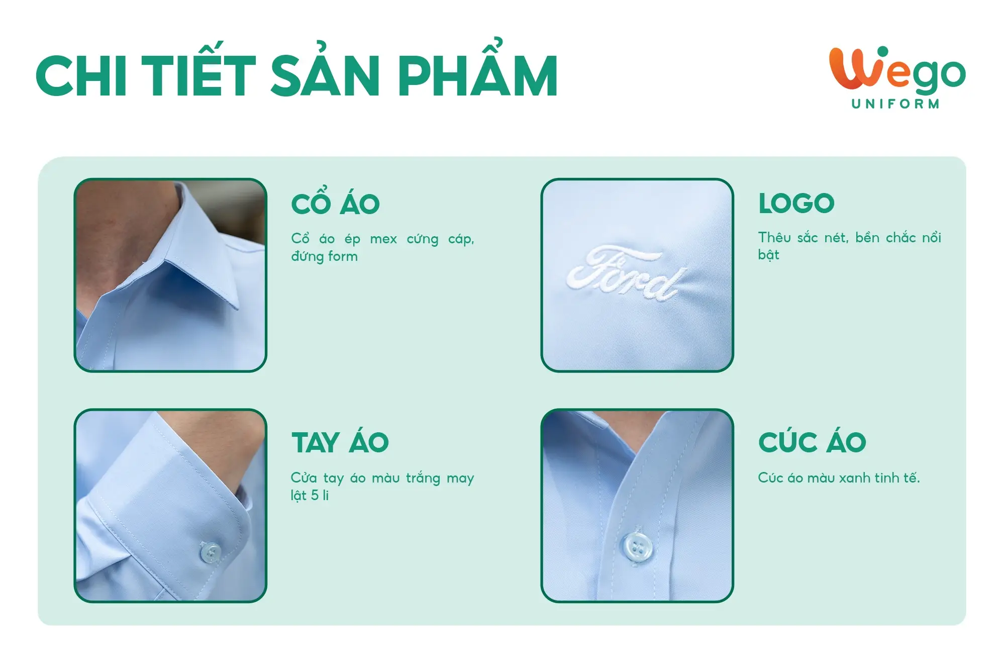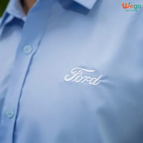 Mẫu đồng phục sơ mi ES04 được thiết kế theo logo thương hiệu Ford, sử dụng màu xanh biển làm chủ đạo.