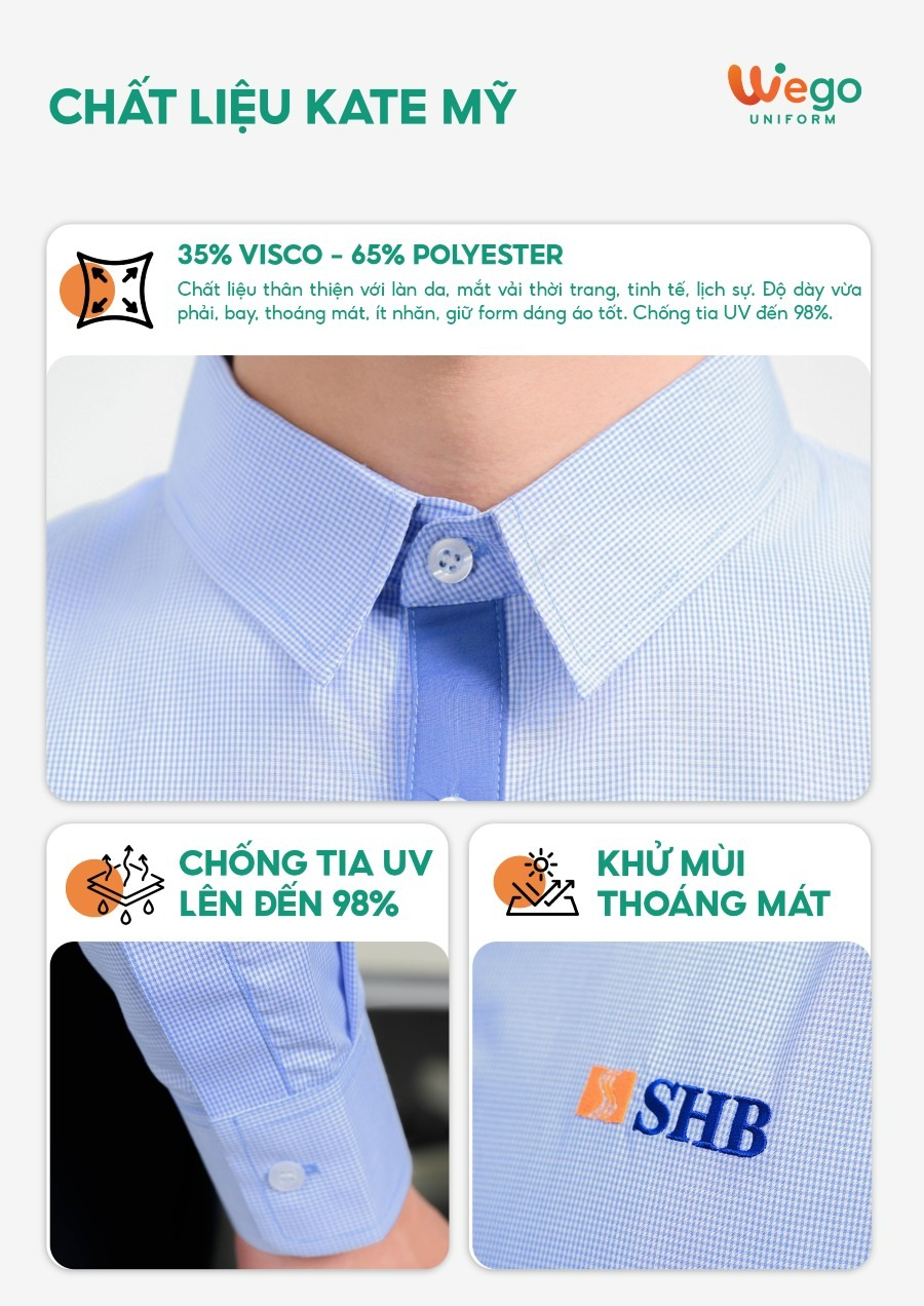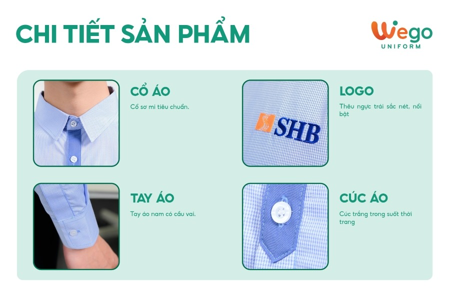 Đồng phục Sơ mi kẻ phối xanh SHB đang trở thành tâm điểm trong bộ sưu tập đồng phục áo sơ mi họa tiết kẻ mới nhất của Wego. Bộ sưu tập lần này sở hữu các mẫu đồng phục áo sơ mi vừa hiện đại, tinh tế, thời trang lại vừa mang xu hướng thân thiện với môi trường. Wego đề cao sự tối giản trong từng thiết kế, chú trọng vào chất lượng sản phẩm nhằm đem lại sự thoải mái, dễ chịu cho người mặc.