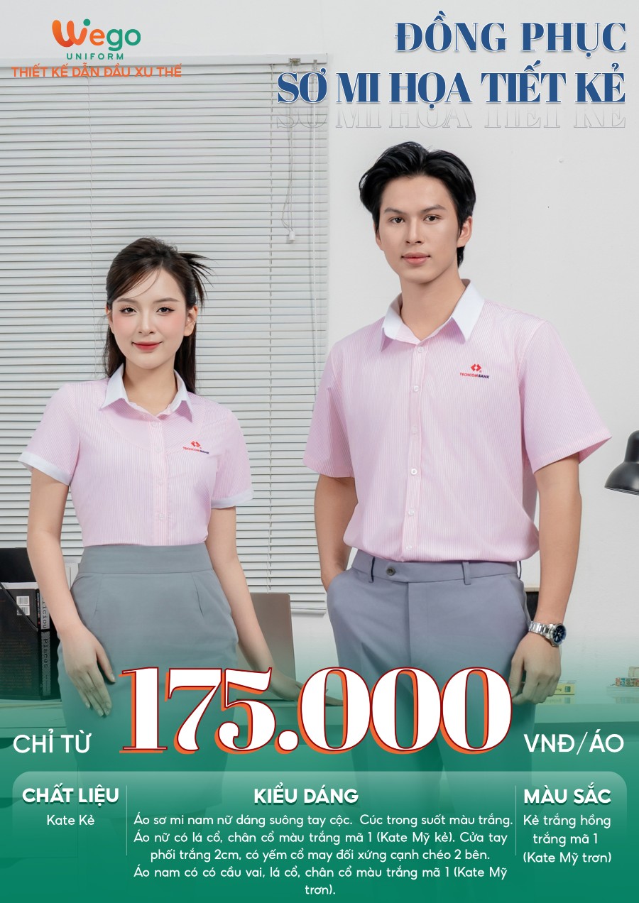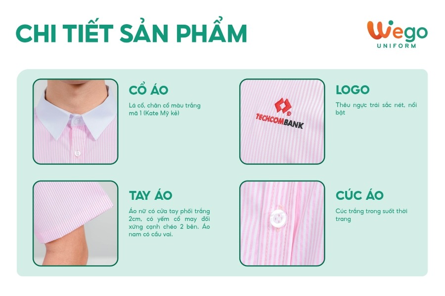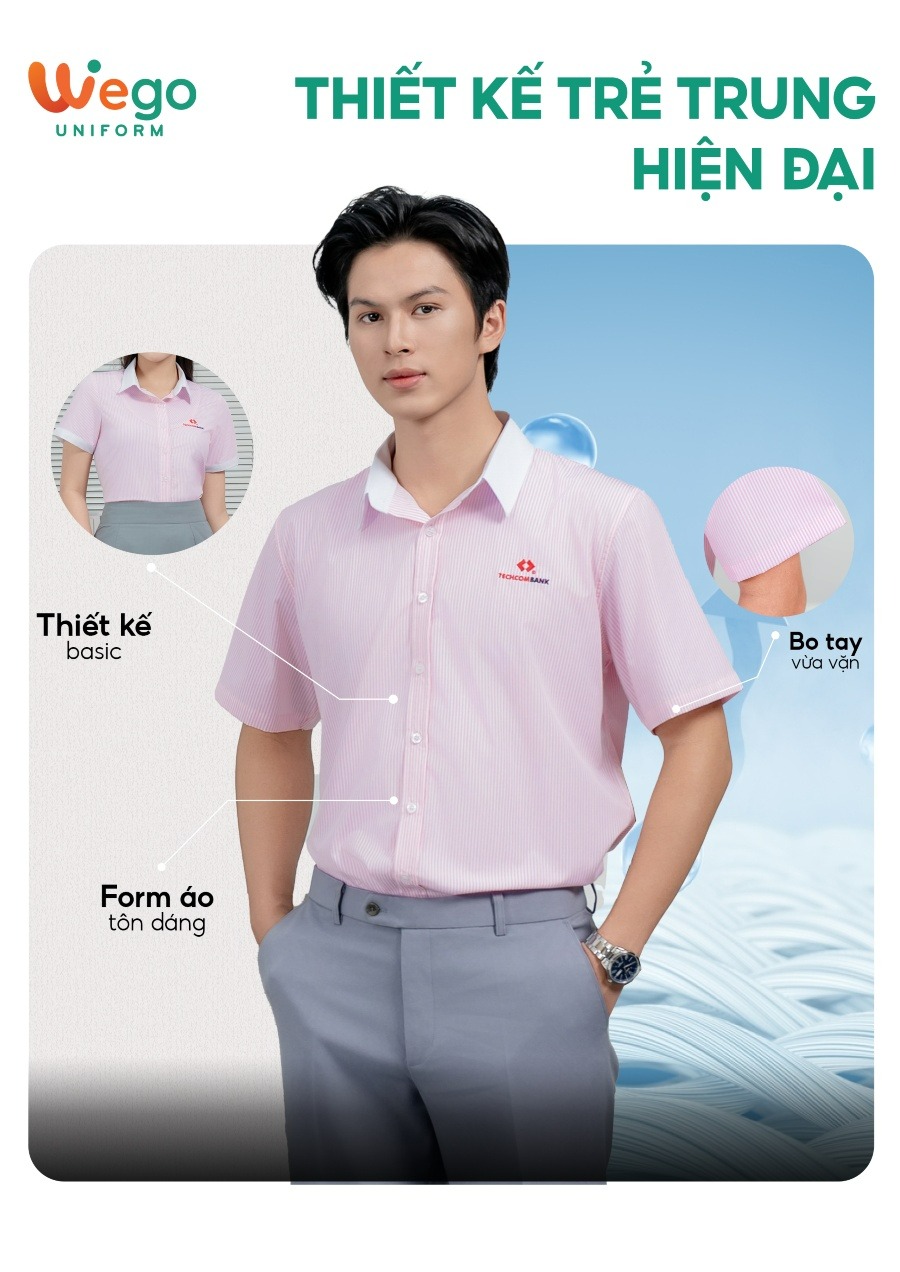 Đồng phục Áo sơ mi kẻ trắng hồng Techcombank đang trở thành tâm điểm trong bộ sưu tập đồng phục áo sơ mi họa tiết kẻ mới nhất của Wego. Bộ sưu tập lần này sở hữu các mẫu đồng phục áo sơ mi vừa hiện đại, tinh tế, thời trang lại vừa mang xu hướng thân thiện với môi trường. Wego đề cao sự tối giản trong từng thiết kế, chú trọng vào chất lượng sản phẩm nhằm đem lại sự thoải mái, dễ chịu cho người mặc.