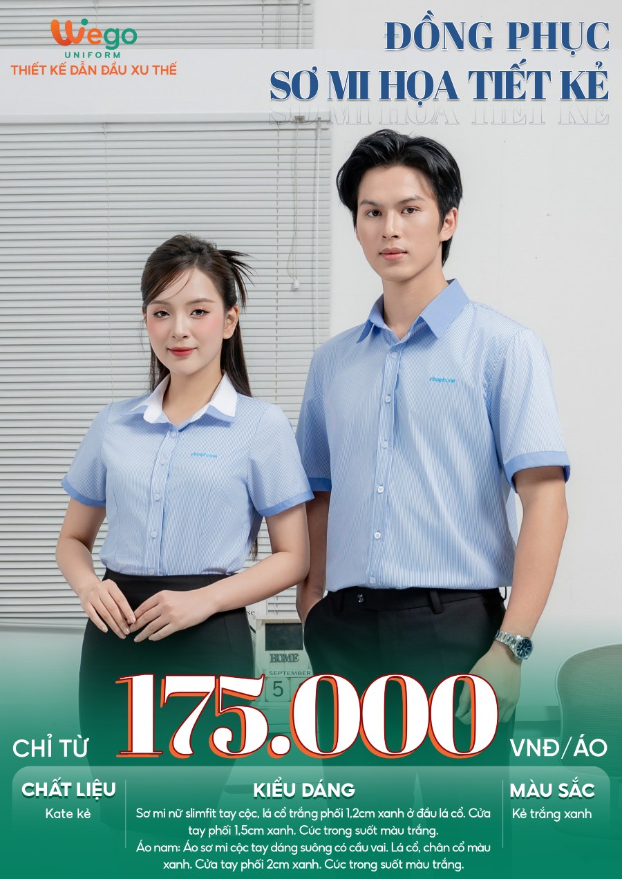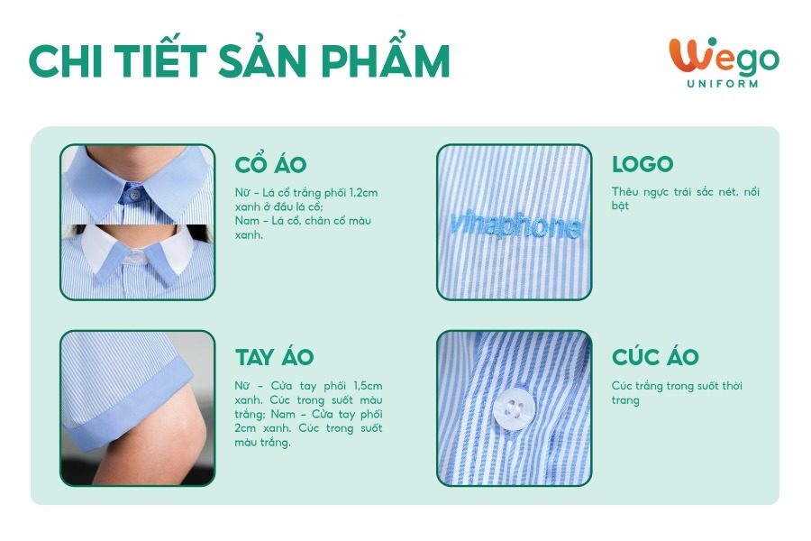 Đồng phục Sơ mi kẻ trắng xanh cộc tay Vinaphone đang trở thành tâm điểm trong bộ sưu tập đồng phục áo sơ mi họa tiết kẻ mới nhất của Wego. Bộ sưu tập lần này sở hữu các mẫu đồng phục áo sơ mi vừa hiện đại, tinh tế, thời trang lại vừa mang xu hướng thân thiện với môi trường. Wego đề cao sự tối giản trong từng thiết kế, chú trọng vào chất lượng sản phẩm nhằm đem lại sự thoải mái, dễ chịu cho người mặc.