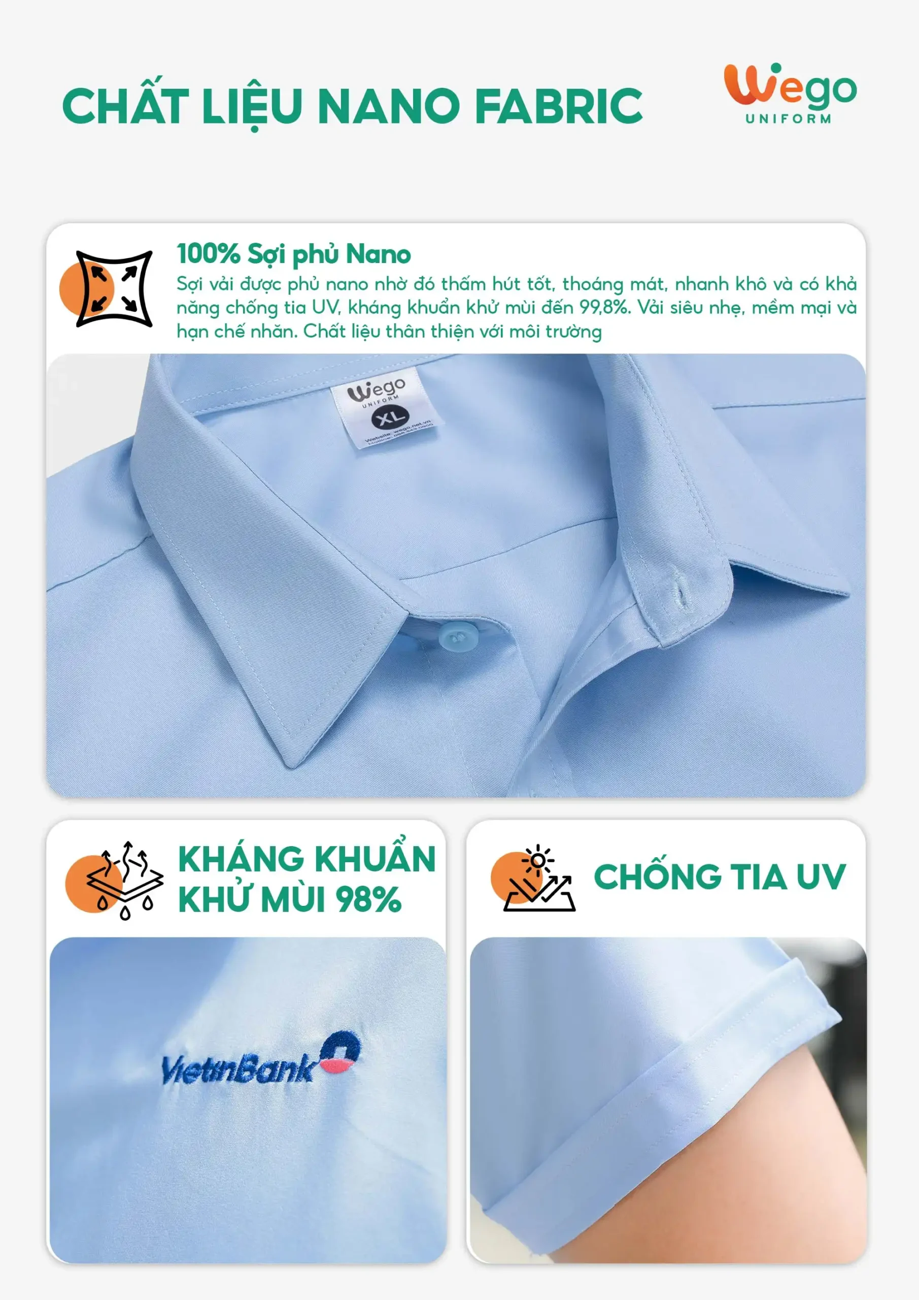 Sơ mi đồng phục VietinBank sử dụng chất liệu vải Nano Fabrics, sở hữu những ưu điểm nổi bật như: