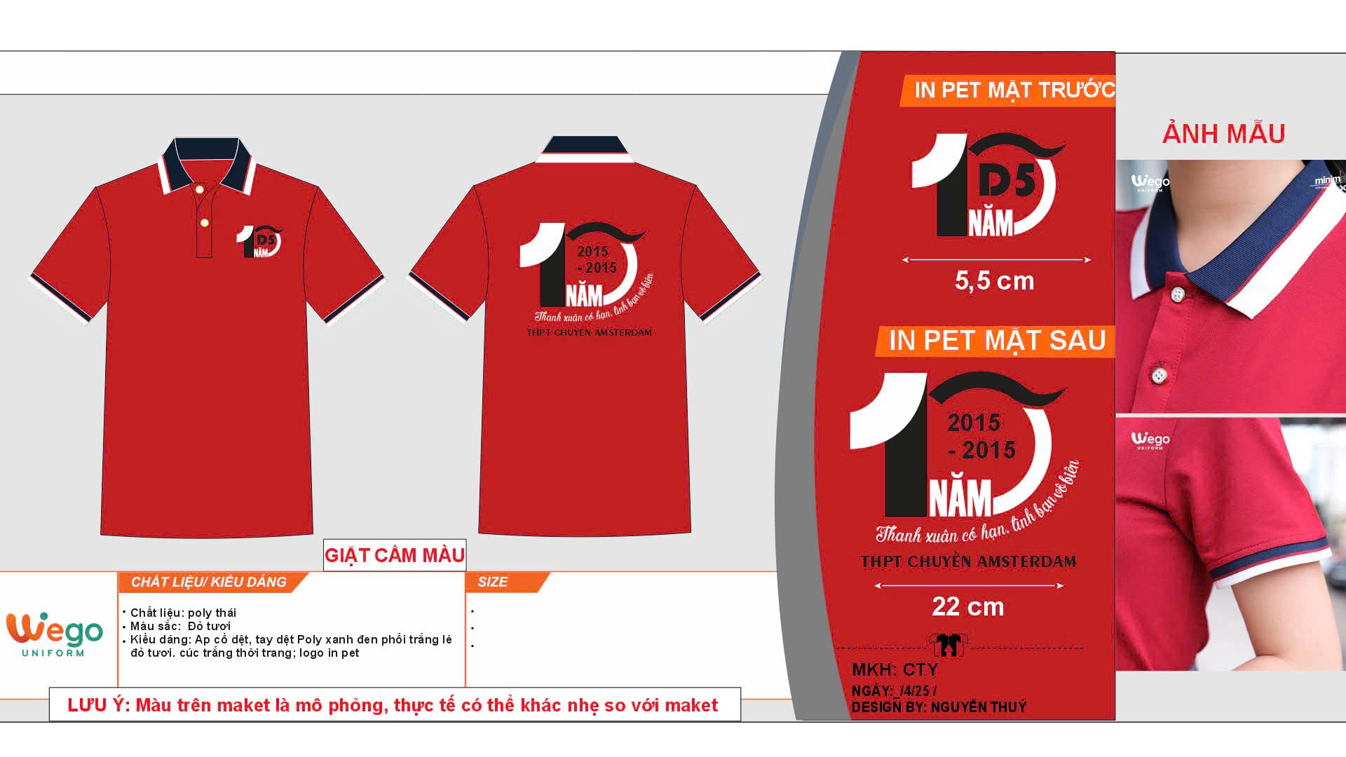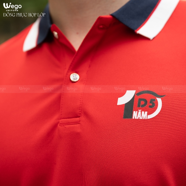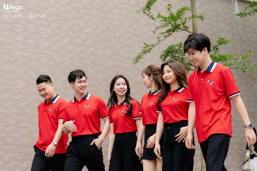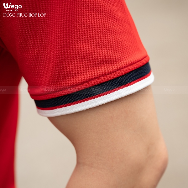 Đồng Phục Wego xin giới thiệu BST đồng phục họp lớp với mẫu áo đỏ tươi cổ dệt xanh đen phối trắng lé đỏ tươi giúp lớp đánh dấu, lưu giữ được khoảnh khắc tụ họp ý nghĩa sau 5-10-20,… năm ra trường.